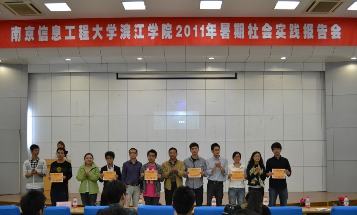 我院师生以“创先争优跟党走,青春献智促发展” 为活动主题,开展了2011年暑期社会实践活动。我院共组织了381支社会实践团队,是我院有史以来规模最大、团队数目最多的一次社会实践。活动涉及民生、教育、环境等多个方面,内容丰富,形式多样,实践足迹遍布大江南北,覆盖到15个省(直辖市)27个市,70余个县、300余个村,实践照片2000余张,活动受到社会各界的广泛欢迎和好评。在院级评比中,有15支团队获得特等奖;24支团队获得一等奖;43支团队获得二等奖;40支团队获得三等奖;506人获得“先进个人”称号;28人获得优秀指导教师;82篇获得优秀调查报告奖。我院同学在社会实践中表现突出,我院也连续第四次被评为“南京信息工程大学暑期社会实践先进单位”。