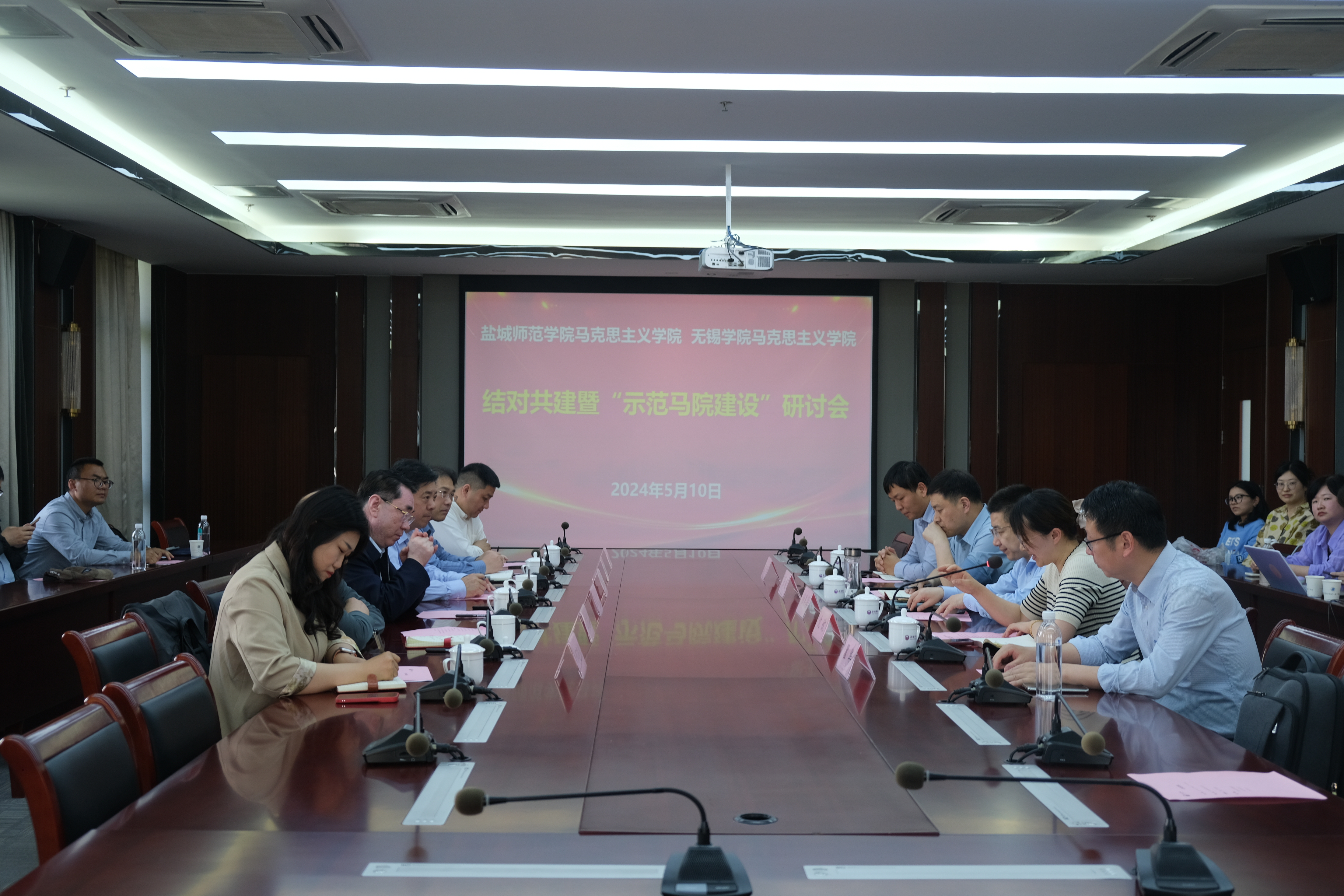 为全面贯彻落实习近平总书记关于思想政治理论课建设的重要论述,落实中共中央办公厅印发的《关于加强新时代马克思主义学院建设的意见》文件要求,充分发挥盐城师范学院马克思主义学院作为江苏省示范马克思主义学院的辐射引领作用,全面加强我校马克思主义学院建设,5月10日下午,我校马克思主义学院与盐城师范学院马克思主义学院举行结对共建活动。盐城师范学院党委常委、副校长庞波,马克思主义学院党总支书记李荣庆,副院长王志国、张廷干,办公室主任邢晓艳等人出席会议,我校党委常委、副校长徐军海以及马克思主义学院副院长沈妉、马克思主义学院教师代表参加了会议。会议由徐军海主持。