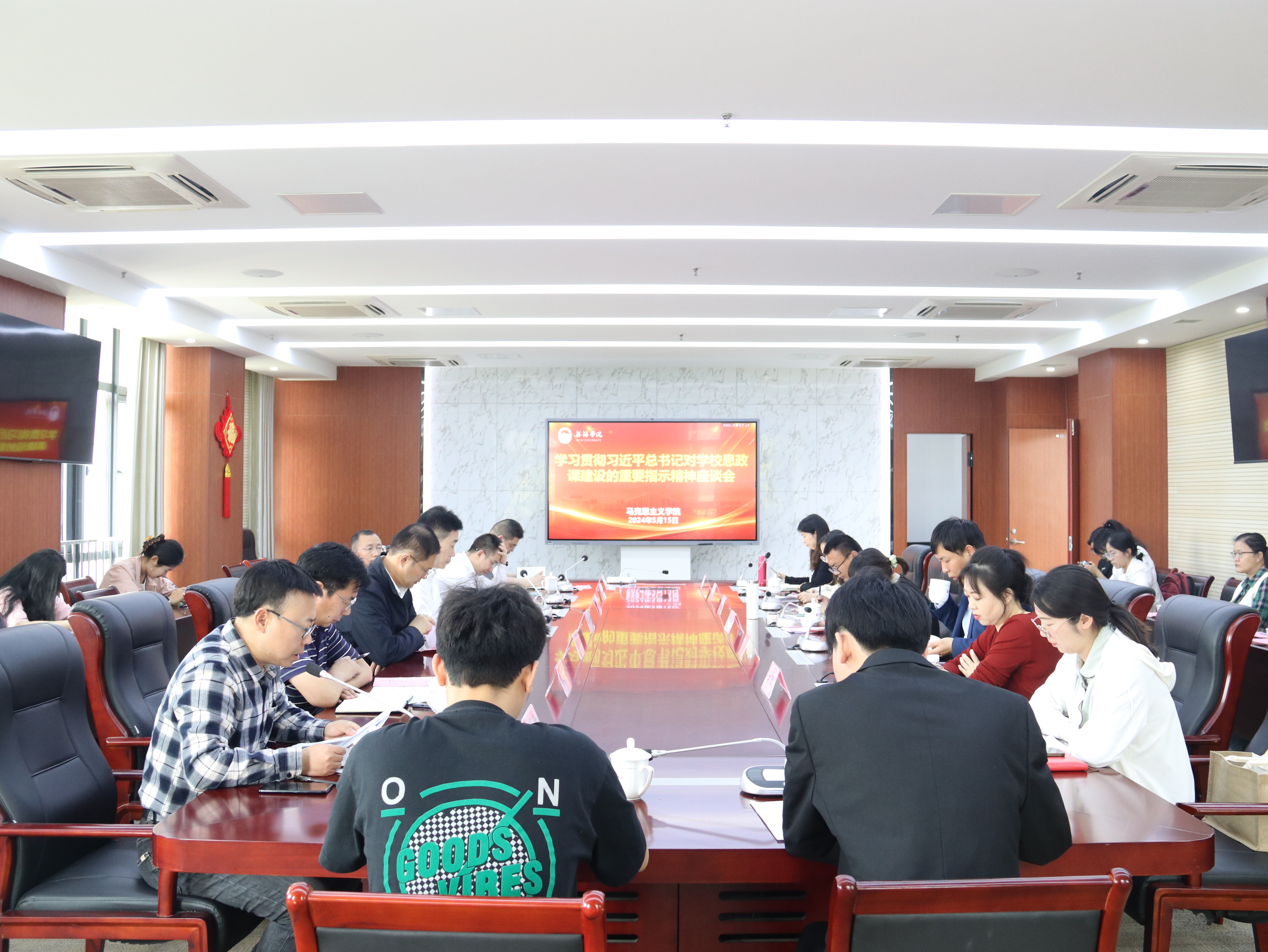 5月15日上午,学校召开学习贯彻习近平总书记对学校思政课建设作出的重要指示精神座谈会,围绕如何推进新形势新任务下学校思政课建设,不断展现新气象新作为进行交流研讨。校党委书记杨建新,党委副书记匡辉,副校长左同宇、徐军海出席会议,会议由匡辉主持。
