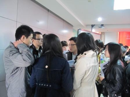 在互动环节,用人单位代表们分别介绍了各自企业的情况和岗位的需求,宣传各自企业的优势和岗位竞争力。参加活动的毕业生也抓住机会向用人单位代表们提出了自己关心的各种问题,积极向用人单位投递求职简历,努力推销自己,现场气氛十分热烈。活动当场,每家用人单位都收到了厚厚的一摞求职材料,并初步圈定了意向人选。