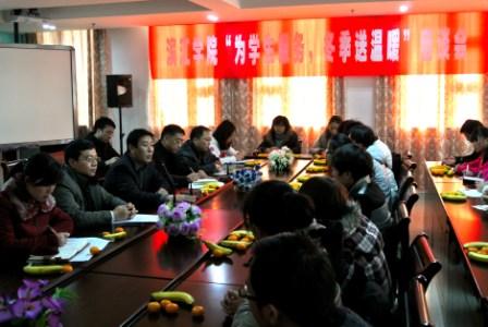 12月9日,滨江学院综合楼五楼大会议室内暖意融融,滨江学院为学生服务冬季送温暖座谈会正在这里举行。来自学院9个系的18名困难学生参加了座谈会。党委书记徐华出席了座谈会,党委副书记、副院长祁正新主持了会议。