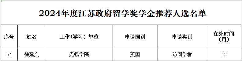 近日,江苏省教育厅公布了2024年度江苏政府留学奖学金项目评审结果,我校轨道交通学院徐建文老师表现优异,获得了该项目资助,据悉,全省共有126人获得此次项目资助。这是我校教师首次入选江苏政府留学奖学金项目。