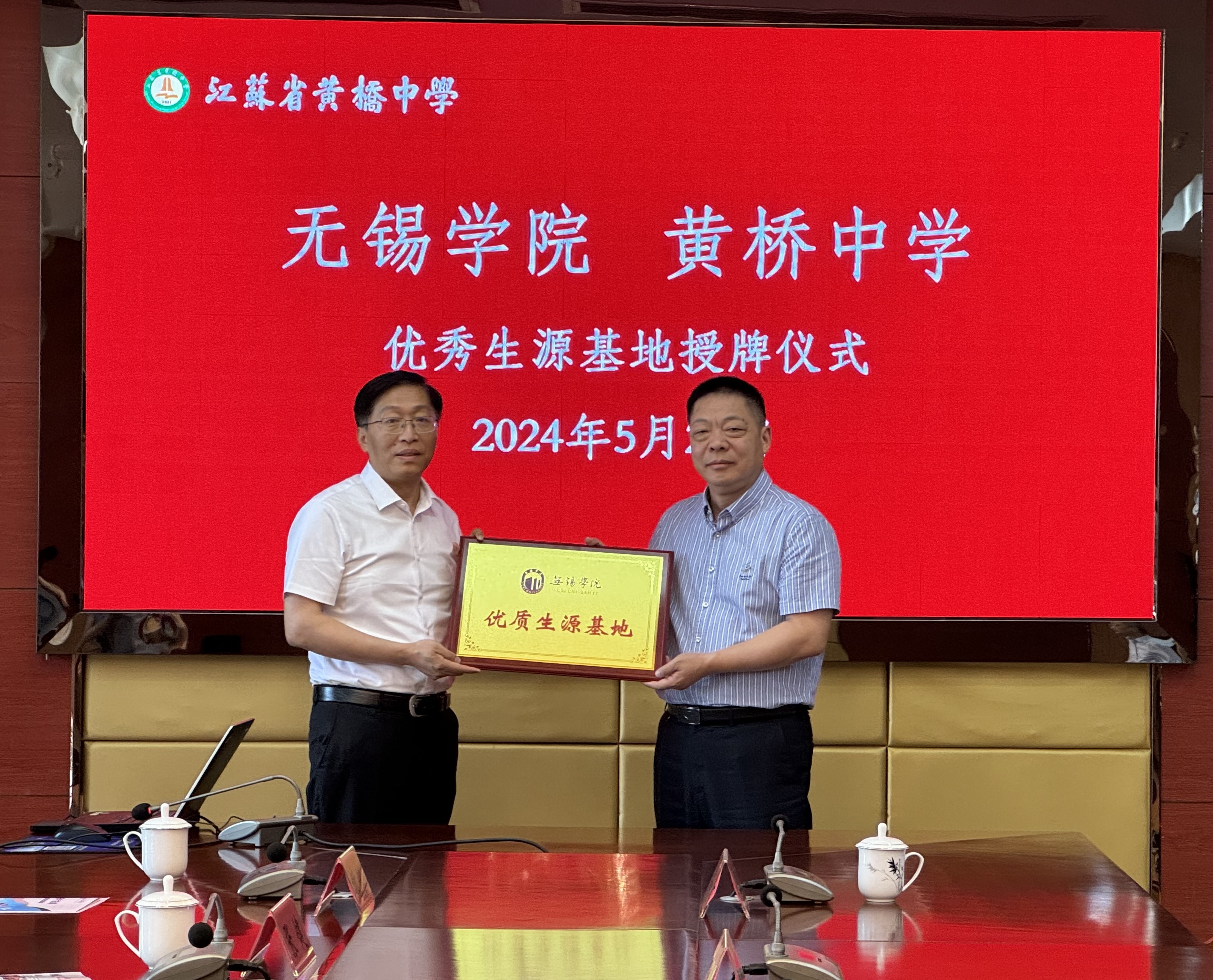 会上,张永宏代表无锡学院向黄桥中学进行“优质生源基地”授牌。学工处处长张灿龙介绍了无锡学院近年来招生情况和2024年招生政策。