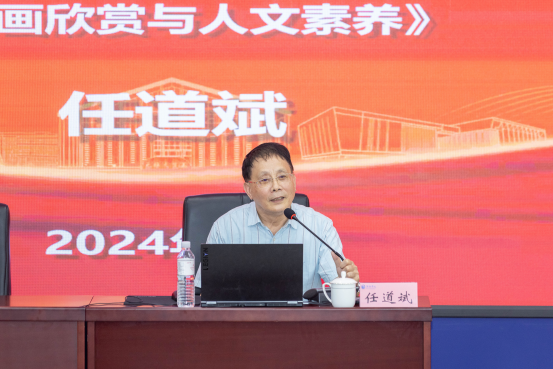 任道斌以王维的诗为引,围绕国画的发展历史和欣赏标准展开了讲座。他重点介绍了中国画的绘画特点、发展过程等方面,任道斌指出,中国画欣赏要从意境、气韵、笔墨、构图、造型、线条等层面展开,而且,中国画欣赏和个人社会阅历、生活情趣、文化知识、审美修养密不可分,大家要热爱中华优秀传统文化,不断学习、积累,提升个人审美素养。此外,他还表示在中西方文化交流日渐深化的趋势下,希望中国画能够以其独有的艺术魅力吸引世界上更多的国家关注和接纳。