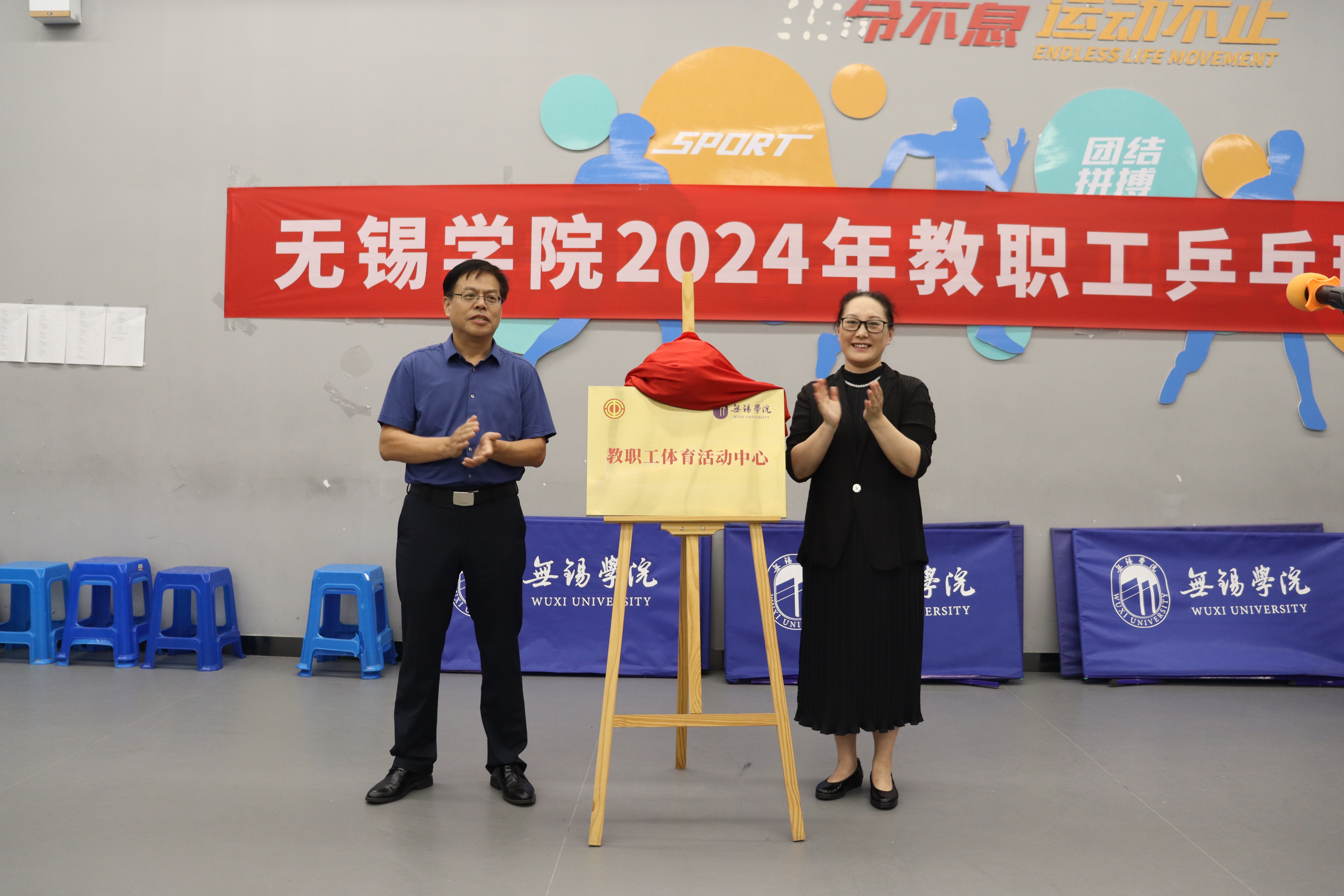 为进一步丰富教职工校园业余生活,积极倡导健康的生活方式,提升广大教职工身体素质,校工会联合体育部利用体育馆现有空间设立了无锡学院教职工体育活动中心。6月19日,教职工体育活动中心启用仪式在体育馆举行。副校长梁惠娥,校纪委书记王友明共同为中心揭牌,部分教职工代表出席活动。