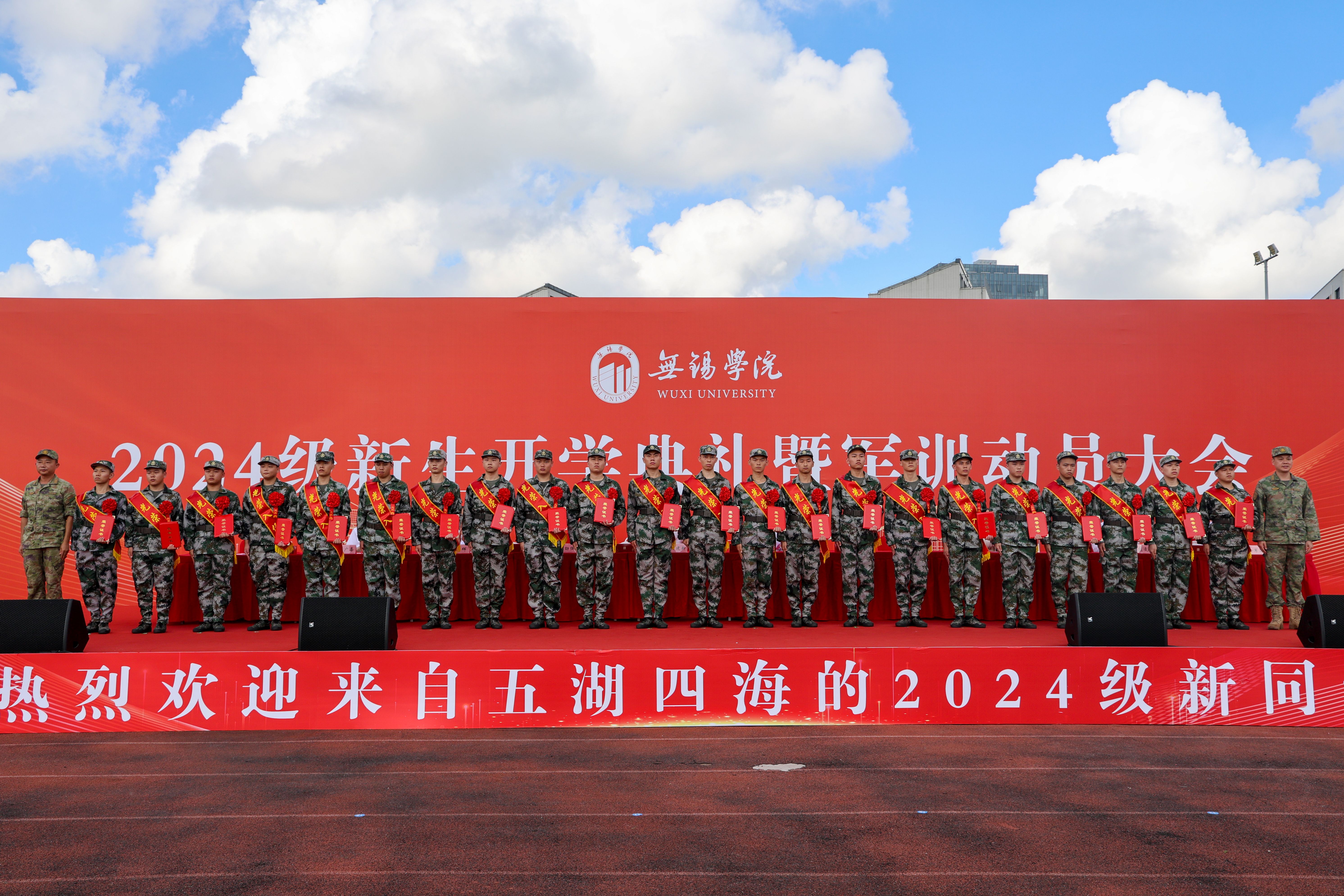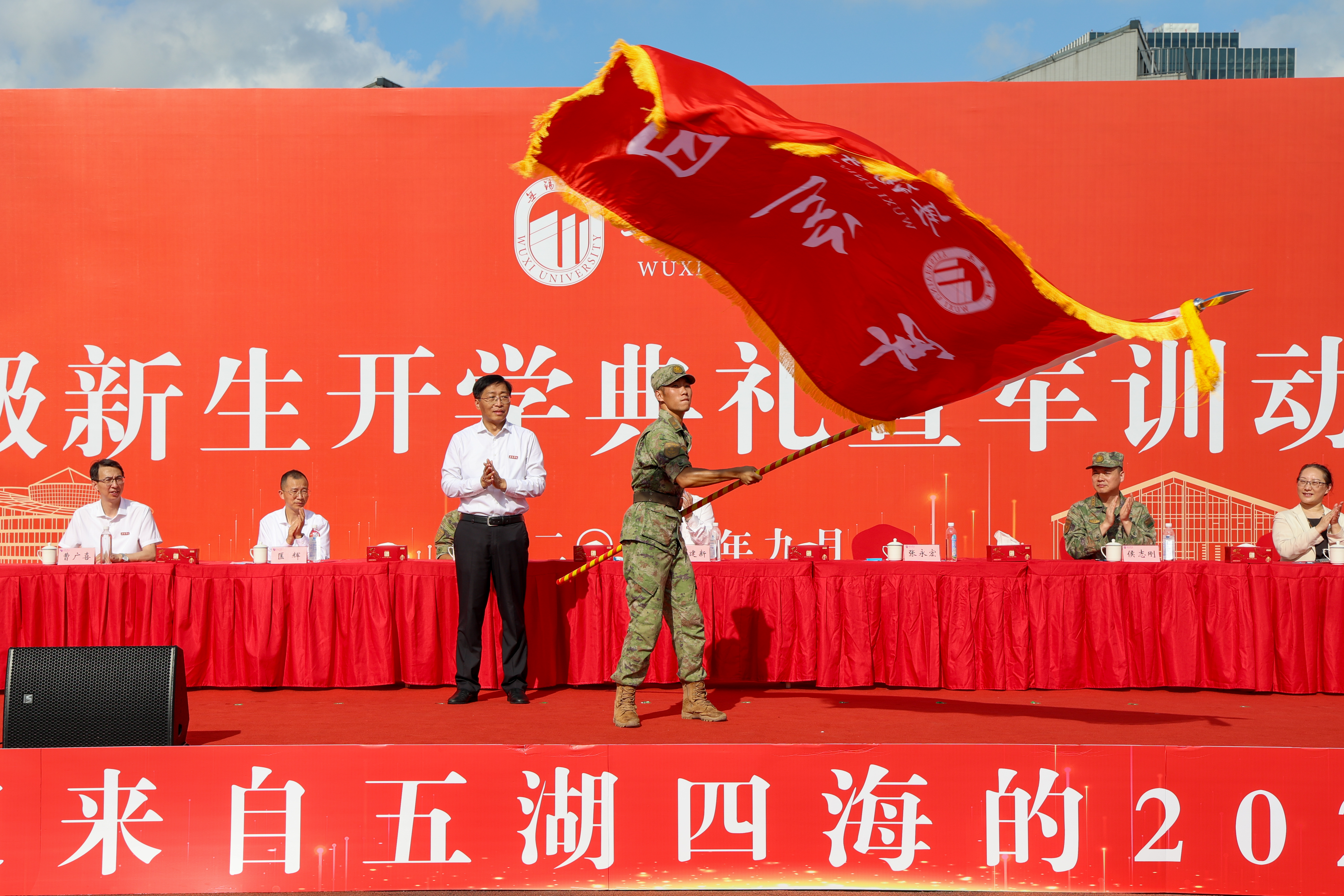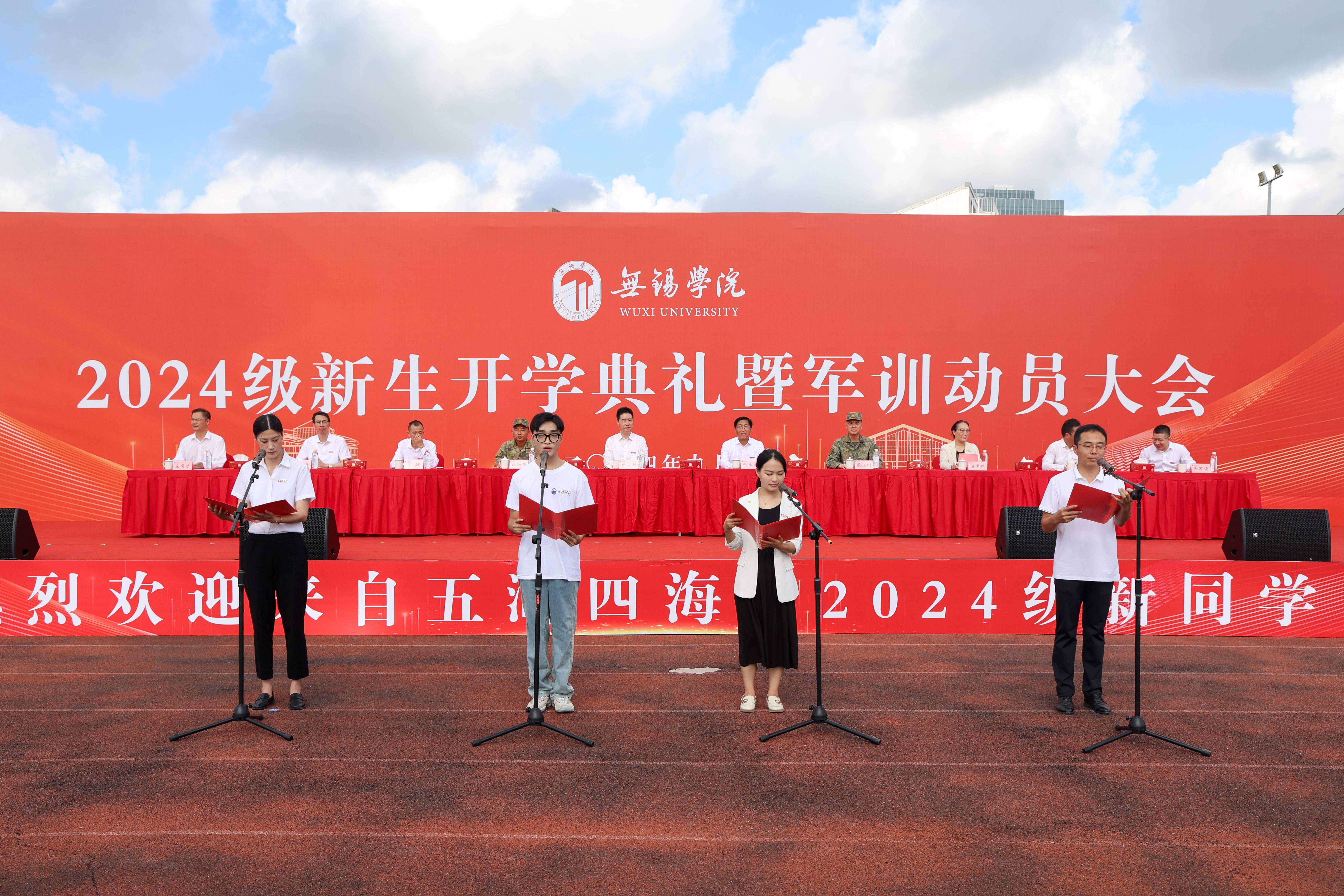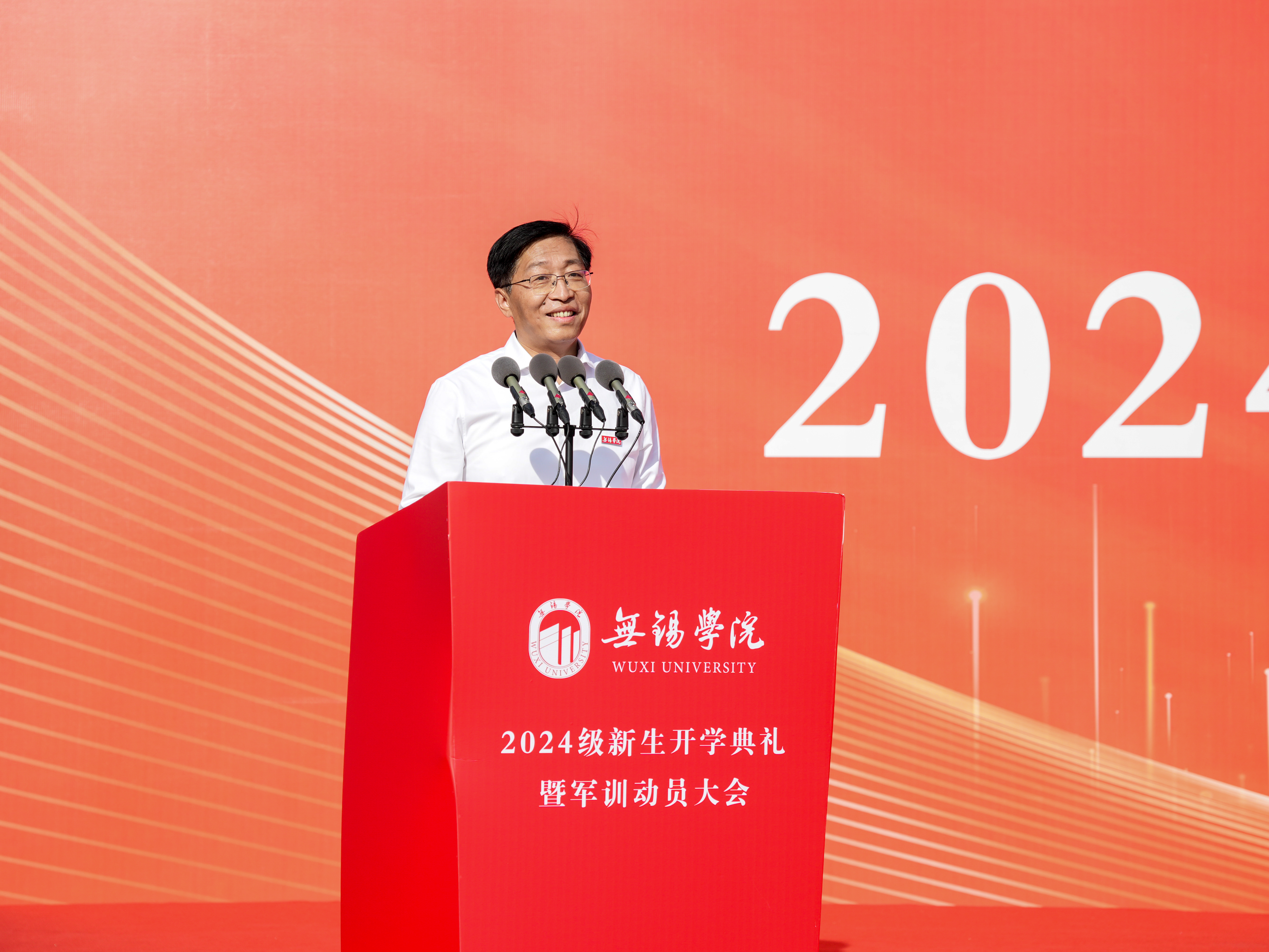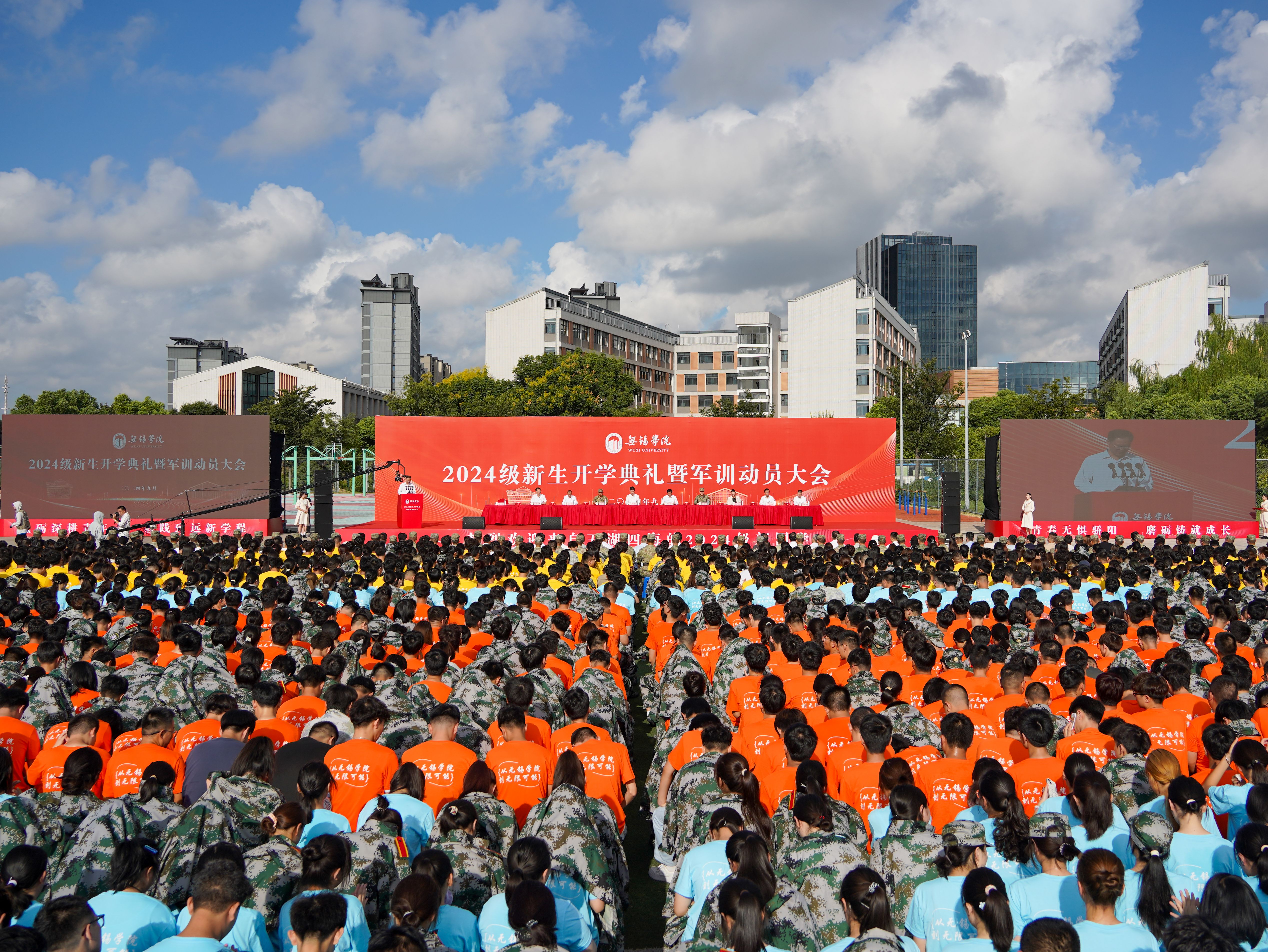 金秋盈硕果,盛典谱华章。9月9日上午,学校2024级新生开学典礼暨军训动员大会在桃园运动场隆重举行。校领导杨建新、张永宏、匡辉、梁惠娥、曹广喜、胡剑凌、左同宇、徐军海,73676部队代表戴劲强中校,锡山区人武部部长侯志刚等出席大会。全体2024级新生、承训教官、各学院和职能部门负责人、教师和在校生代表参加大会。大会由副校长左同宇主持。