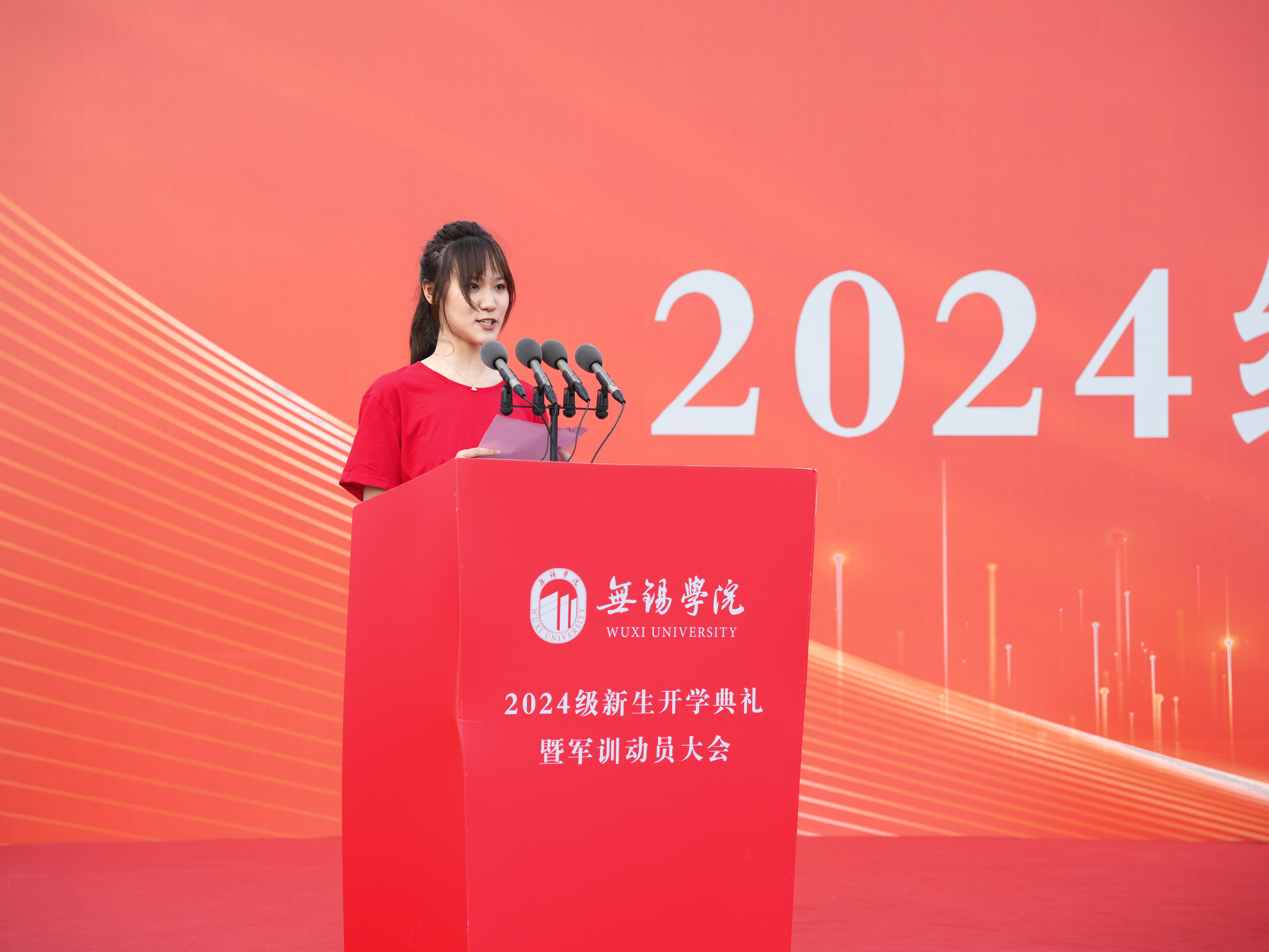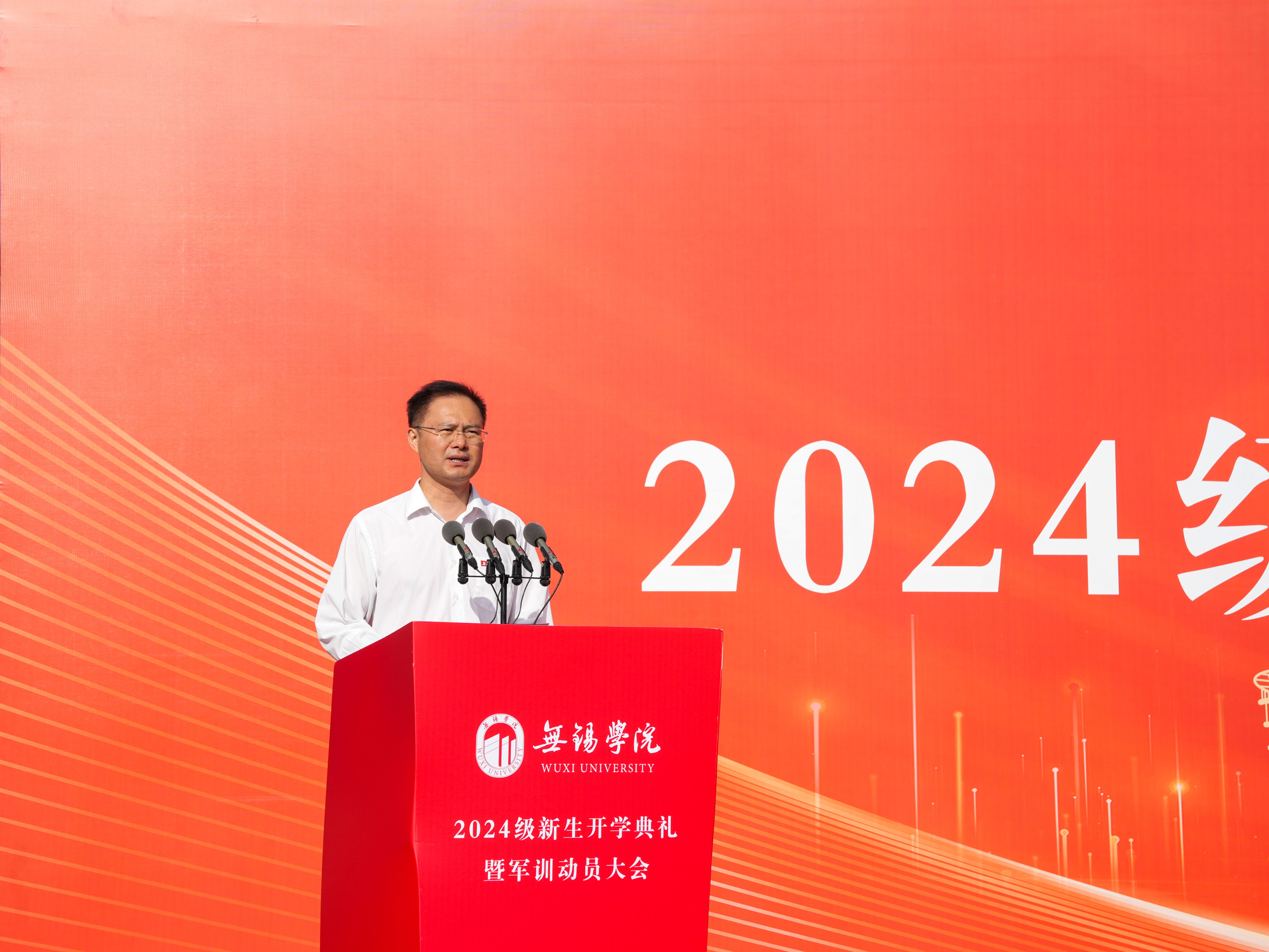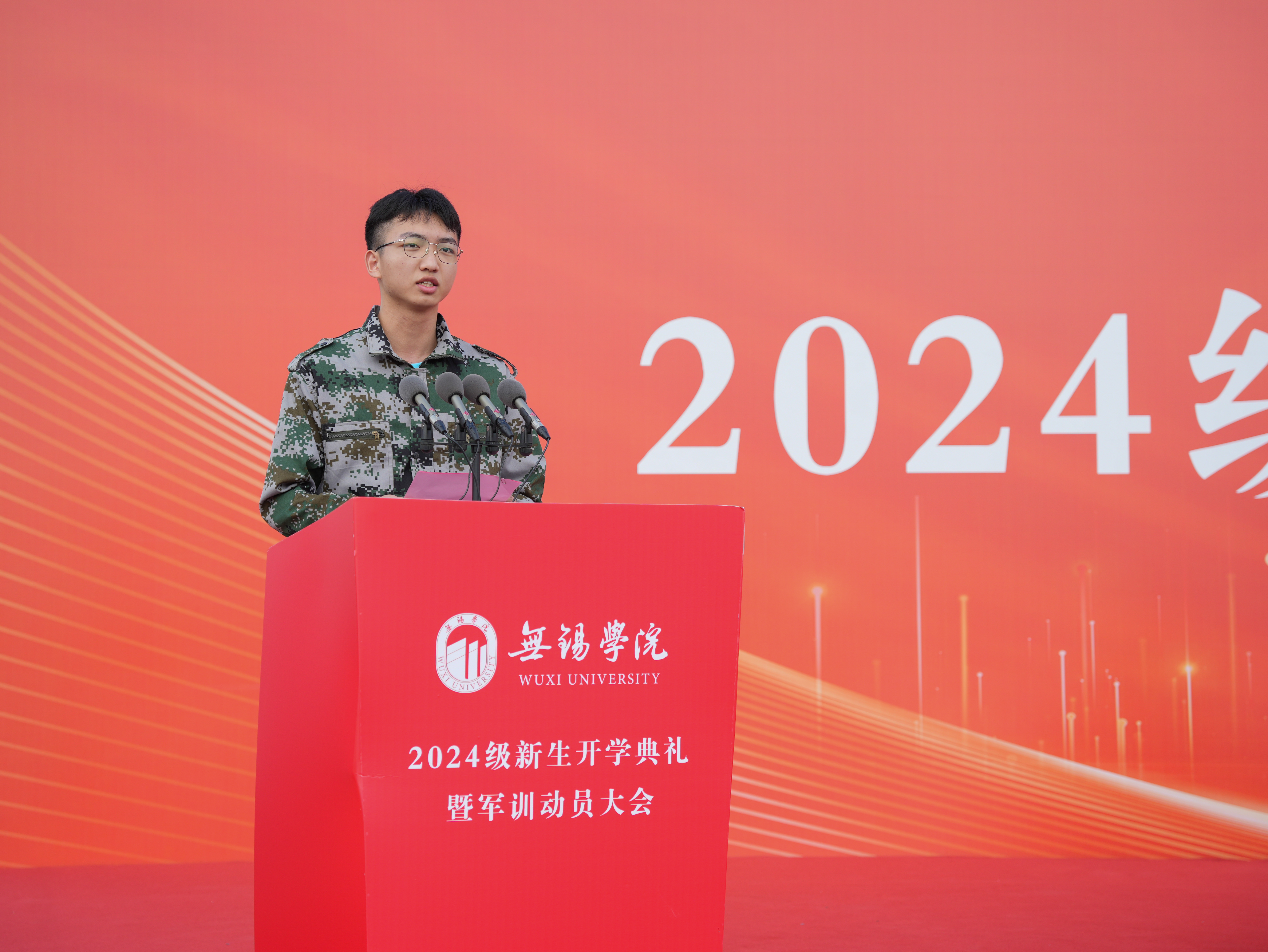 2024级新生代表,物联网工程学院周为同学在发言中表示,将努力夯实理论知识、丰富实践经验,把个人梦想与学校发展、民族复兴紧紧地连在一起,在以后更为激烈的竞争中乘风破浪,展现锡院学子风采。