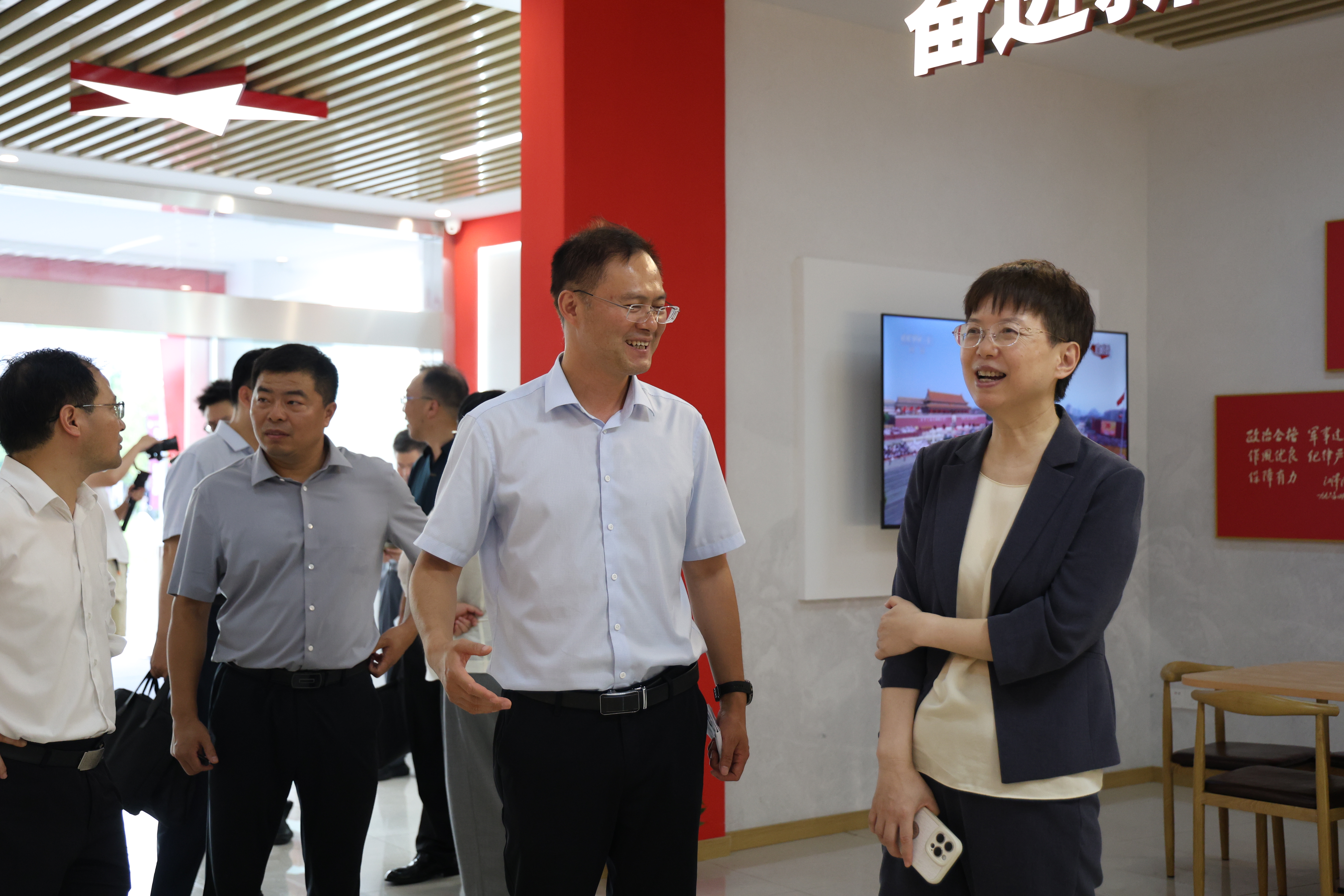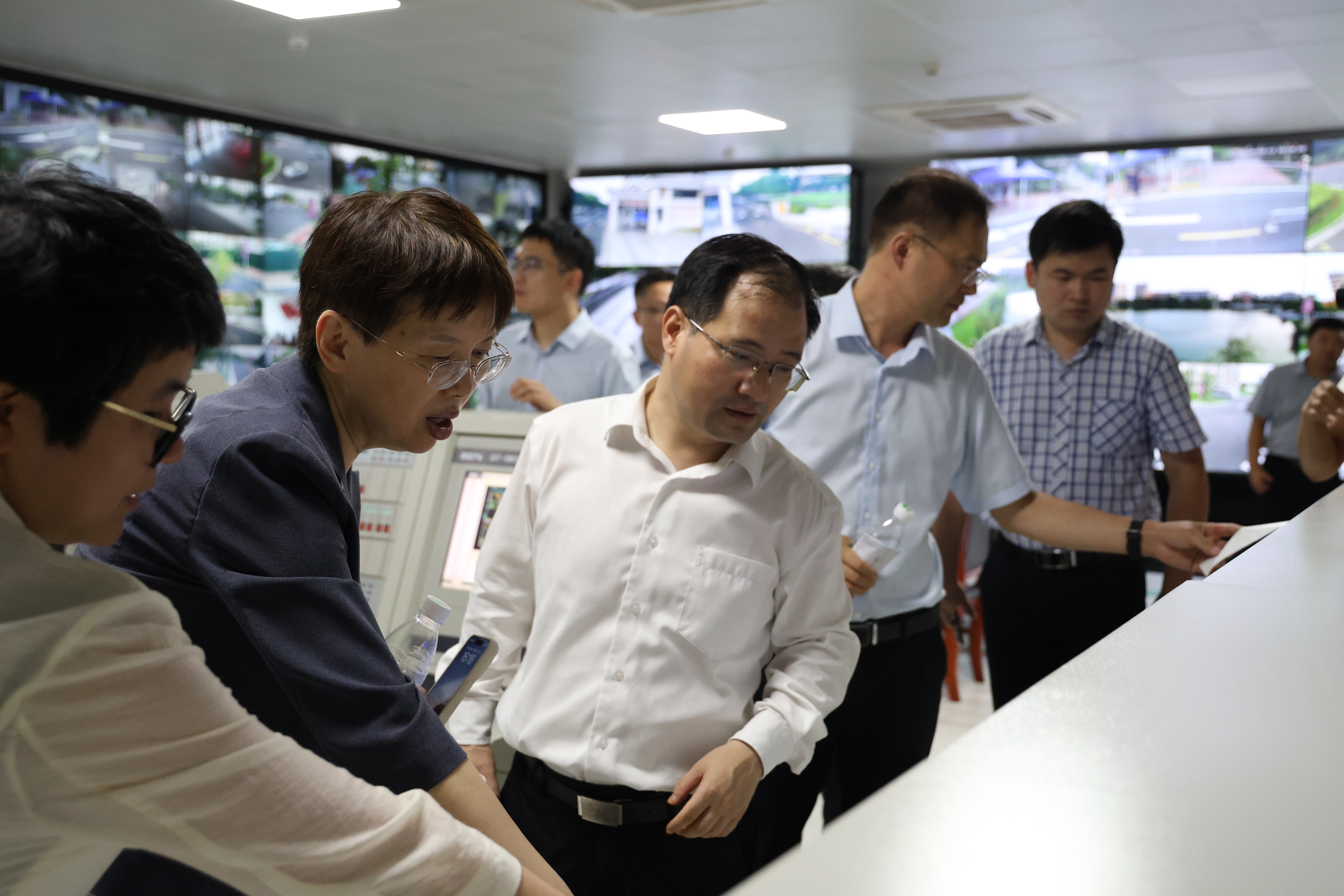 曹玉梅一行重点考察了校园安全、学生教育管理等工作,参观了梅园宿舍、“一站式”学生社区、兵役服务站、大学生心理健康教育与研究中心、校园警务室和监控中心,听取了各功能场地使用情况的汇报,了解学校秋季学期老生返校、新生报到、军训、大学生心理健康教育、警校联动、校园安全稳定等情况。