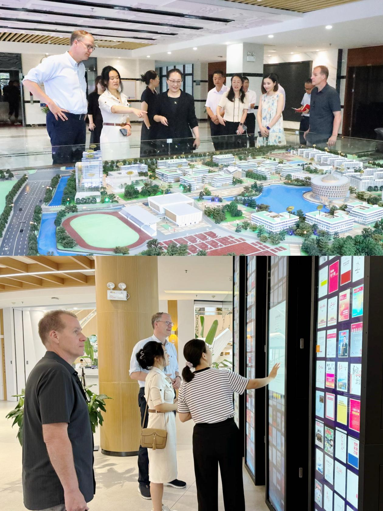 会上,双方围绕德国奥斯纳布吕克应用科学大学在自动化、计算机科学等领域的师生互访、联合培养项目、科研项目合作等议题进行了深入探讨,并达成了初步共识。奥斯纳布吕克应用科学大学对华高等教育中心(HZC)将继续作为两校合作的桥梁,推动双方在高等教育领域的深入交流。会后,Hendrik Lackner教授一行参观了学校沙盘和图书馆。