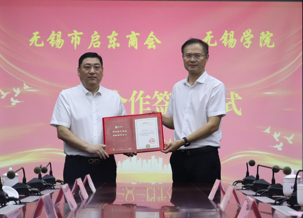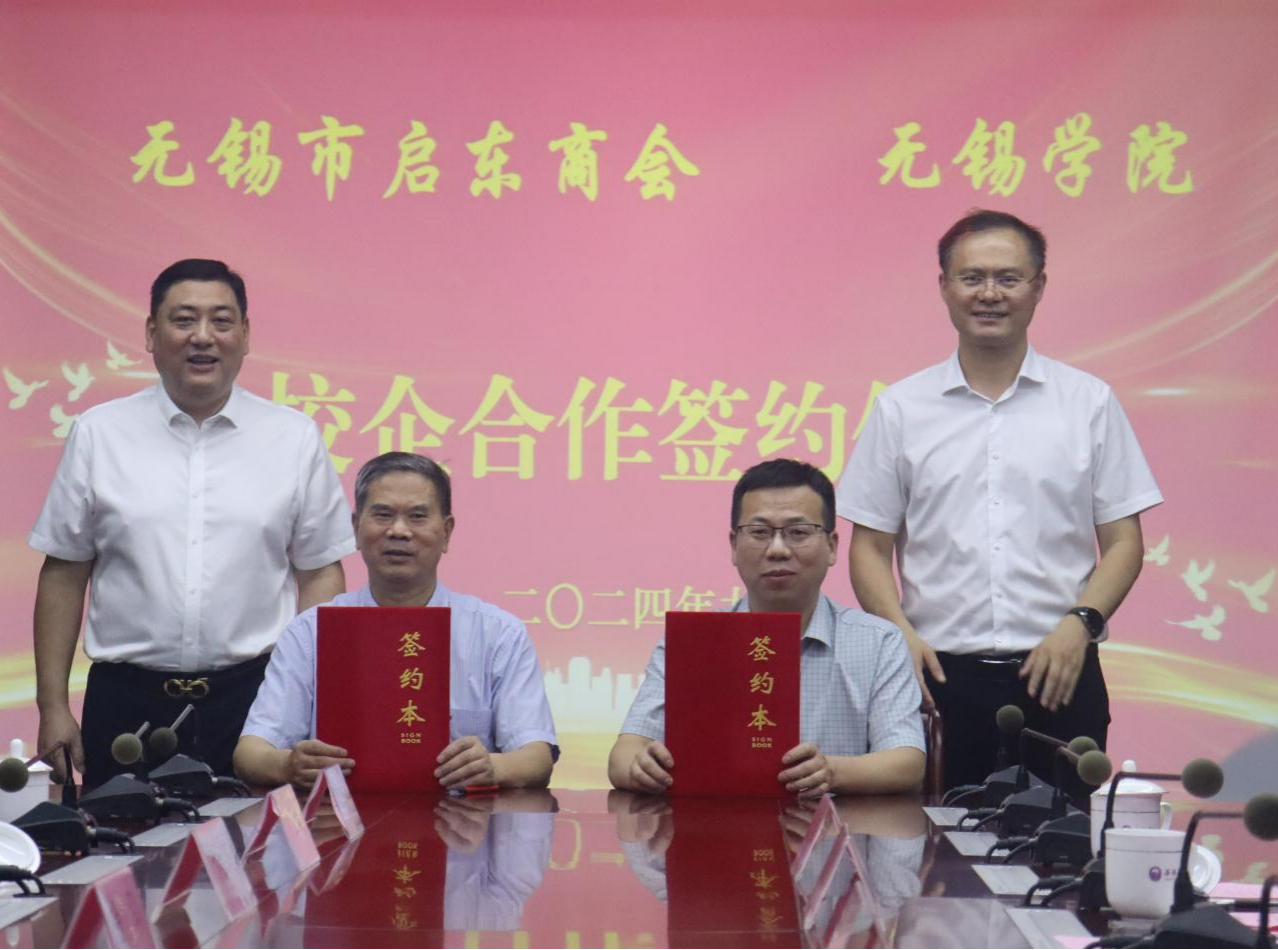 9月26日上午,无锡市启东商会“启航助学金”签约仪式在我校举行。无锡市启东商会会长陆军一行,我校党委书记杨建新、副校长左同宇及相关职能部门负责人出席仪式。签约仪式由学生工作处处长张灿龙主持。