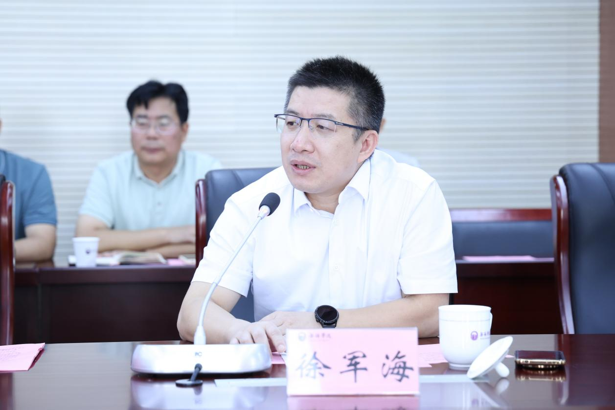 杨建新对江苏省社科联张新科书记一行的莅临指导表示诚挚的欢迎和衷心的感谢,向来访嘉宾详细介绍了近年来学校在办学治校中展现出的新面貌和在事业发展上取得的新成就,并重点介绍了我校在哲学社会科学领域取得的标志性成果。杨建新表示,此次我校成功获批成为江苏省社科联团体会员,不仅是对学校哲学社会科学领域既有发展成果的充分肯定,更是对学校未来学科发展、学科布局工作的指引和鞭策,学校将深入学习贯彻党的二十届三中全会、全国教育大会和省委十四届七次全会精神,坚持以党的创新理论为指导,紧紧围绕推进中国特色哲学社会科学体系在学校教育教学工作中的落地实践,不断改革创新、努力担当作为,为中国特色社会主义教育强国建设作出新的贡献。