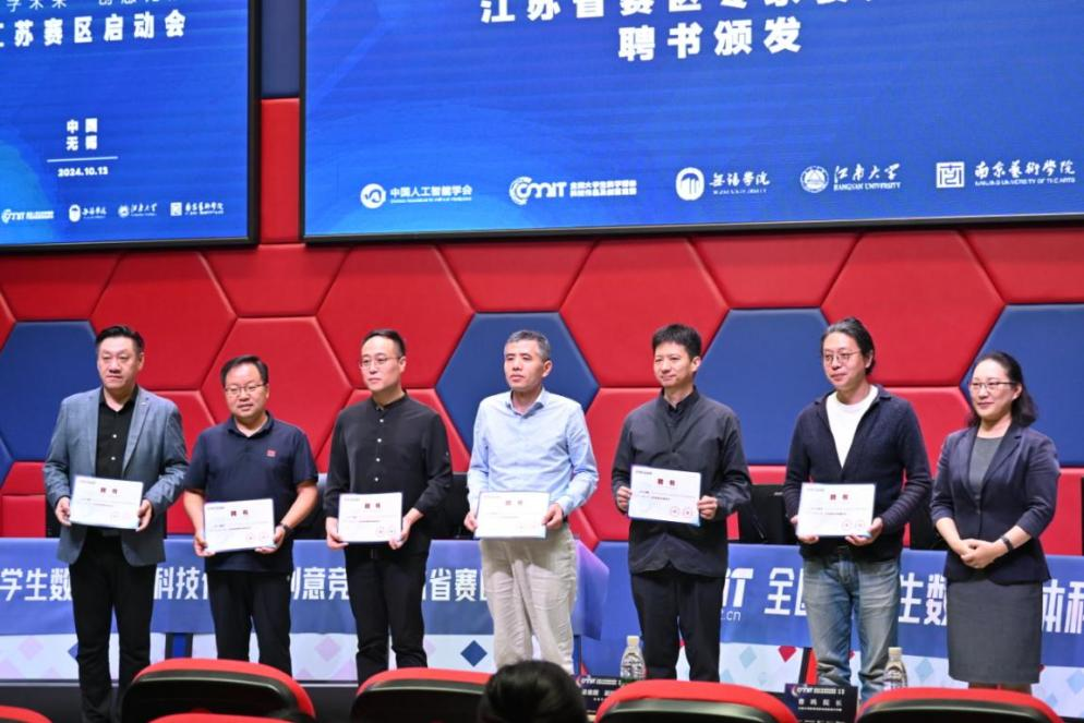 梁惠娥对我校的发展情况进行了介绍,她表示,长期以来,学校高度重视新文科背景下的学科交叉融合发展,本次活动不仅是一次深化交流与合作的宝贵机遇,更是积极贯彻落实党的二十大报告所提出的重要任务——“加速推进数字经济的发展,实现数字经济与实体经济的深度融合,构筑具有国际竞争力的数字产业集群”的具体举措,期待通过本次竞赛的成功举办,进一步激发广大师生的创新精神和实践能力。会上,梁惠娥还为专家委员会委员颁发了聘书。