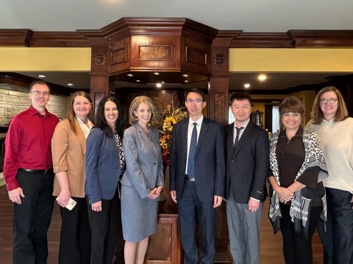 在美国富特海斯州立大学,代表团一行会见了校长Tisa Mason、常务副校长Jill Arensdorf、国际合作负责人和相关学院院长。美国富特海斯州立大学副校长Jill Arensdorf在讲话中回顾了两校的合作历程,并分享了富特海斯州立大学的办学传统、理念和其独特的学科优势。曹广喜在介绍学校整体情况时,特别赞扬了双方在过去建立的坚实合作基础,他表示,双方的友好关系不仅有力推动了中外合作办学项目的合作,也为未来在国际化建设、科研创新以及学生交流等多方面持续深化合作提供了广阔前景。
