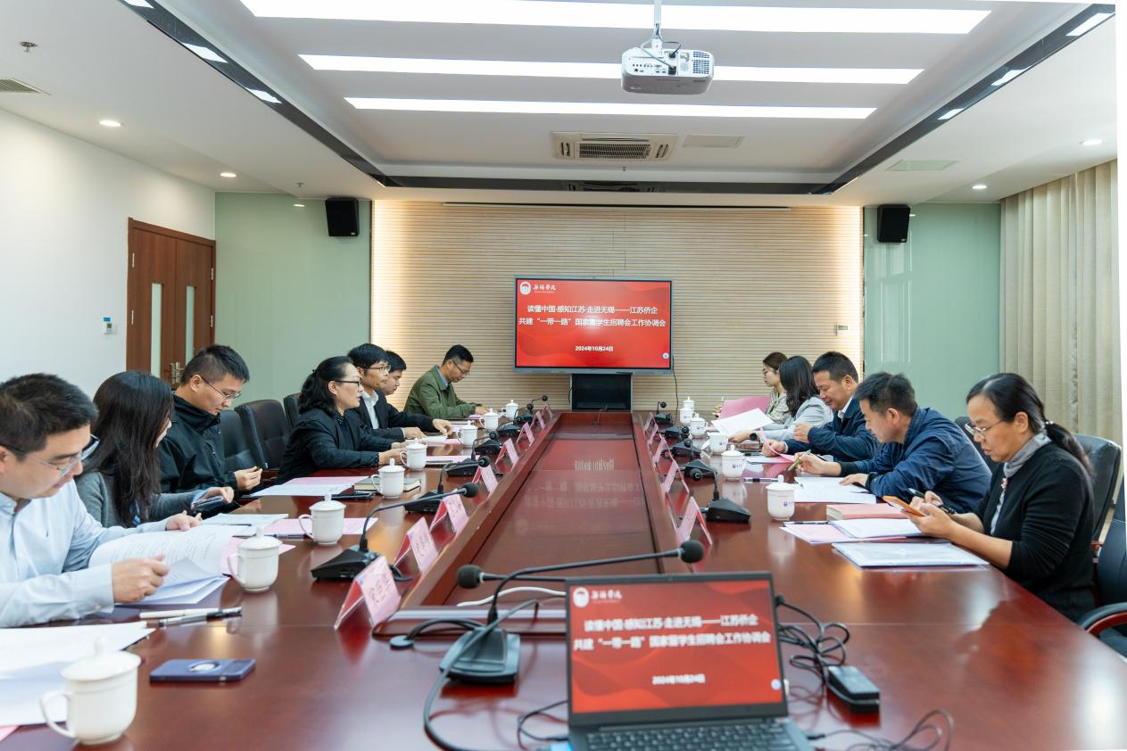10月24日上午,读懂中国·感知江苏——江苏侨企共建“一带一路”国家海外招聘会工作协调会在行政楼301会议室召开。无锡市侨联党组书记、主席李涛一行4人出席了会议,党委办公室、校长办公室、党委宣传部、学生工作处、后勤管理处、保卫处、体育部、国际合作与交流处等部门负责人参加。会议由副校长梁惠娥主持。
