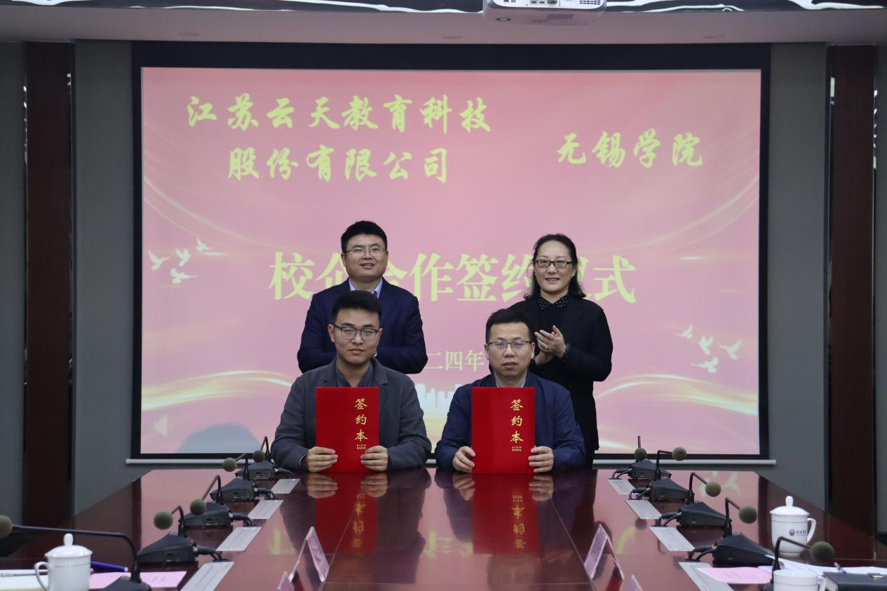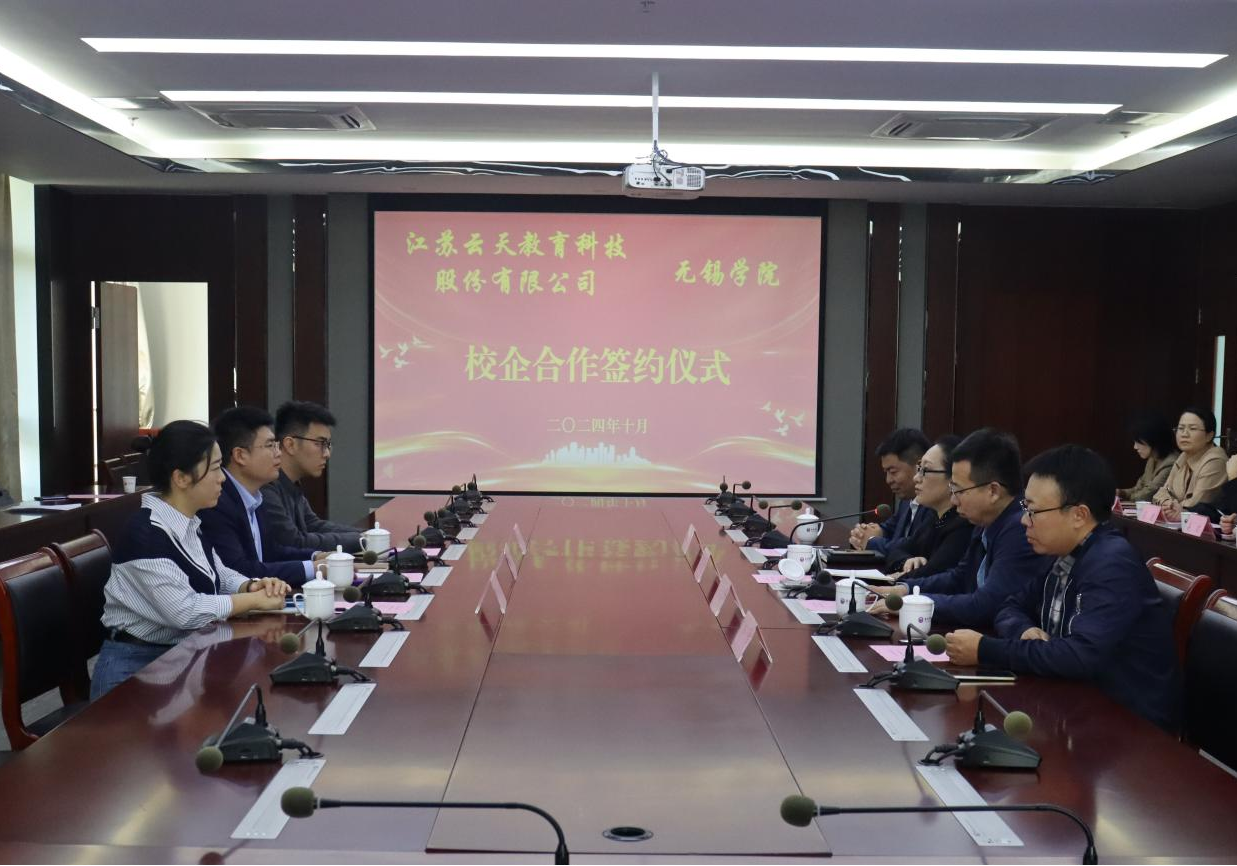 10月24日下午,我校与江苏云天教育科技股份有限公司校企合作签约仪式在行政楼525举行。江苏云天教育科技股份有限公司董事长姚来一行,我校党委常委、副校长梁惠娥及相关职能部门负责人出席仪式。签约仪式由学生工作处处长张灿龙主持。