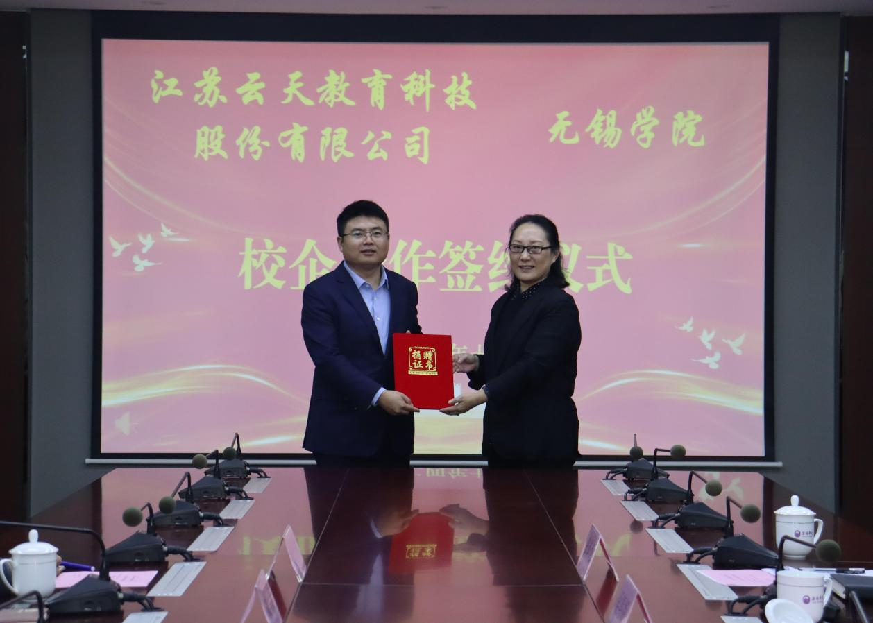 会上,校企双方共同签订了校企合作协议,并就校企合作、学生个性化发展、公益指导等方面进行了深入交流。梁惠娥代表学校颁发了捐赠证书,并对江苏云天教育科技股份有限公司的慷慨捐赠和真诚合作表示感谢。(学生工作处/文、图:徐月欣;审核:张灿龙)