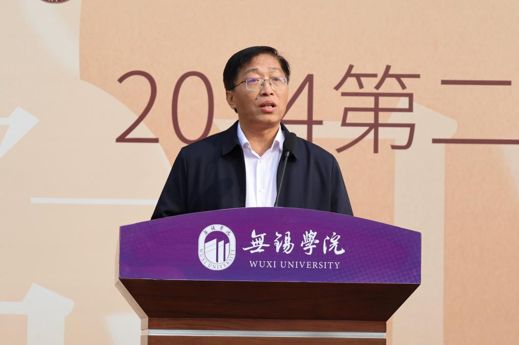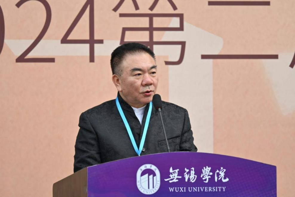 校长张永宏向与会艺术家表示诚挚的欢迎并介绍了近年来学校的发展情况。他表示,学校始终坚持以文化人、以文育人,持续推进中华优秀传统文化进校园,构建完善“精神文化、制度文化、环境文化、载体文化、活动文化”五位一体校园文化体系建设,全面实施“一院一品”文化工程,新建无锡市首家高校钟书驿站和吴地雅韵文化研习馆,开展“非遗文化进校园”“高雅艺术进校园”、校园网络文化节等百余场品牌文化特色活动,举办无锡民间工艺展、无锡集邮展、优秀书法摄影作品展等特色展览活动,全力开创锡院特色文化空间。促进艺术教育与中国传统文化创新融合,为无锡乃至苏南地区文化产业发展赋能。