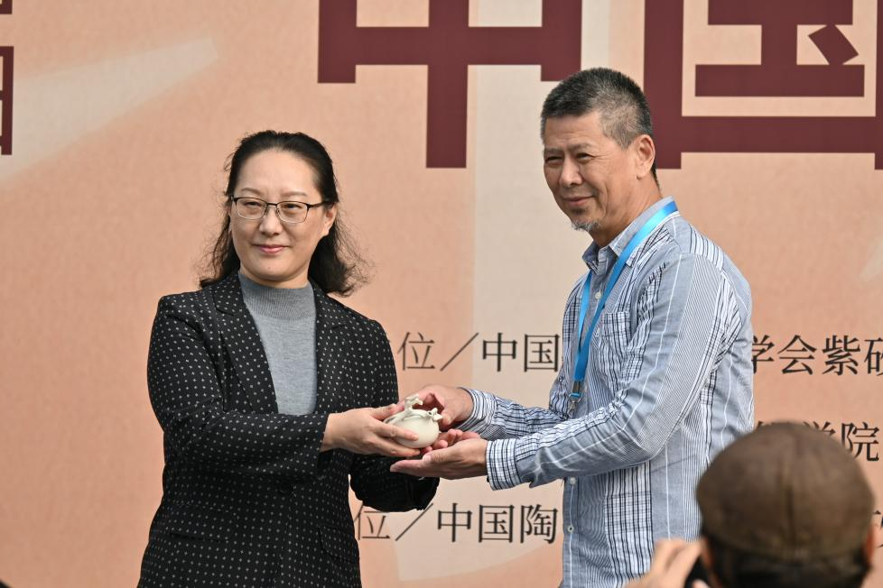 中国工艺美术学会紫砂专业委员会主任、中国工艺美术大师季益顺以主办方代表向到场嘉宾、领导和参展艺术家们表示热烈欢迎和衷心感谢。季益顺表示,陶瓷作为中华民族悠久历史文化的瑰宝,承载着千年的文明记忆与匠人精神。它不仅是实用与美观的完美结合,更是中华民族智慧与创造力的生动体现。本次中国名陶邀请展,汇聚了来自全国各地的顶尖陶瓷艺术家及其精心之作,作品不仅展现了陶瓷艺术的多样风貌和精湛技艺,更体现了艺术家们对传统文化的深刻理解与现代审美的独特诠释。希望本次邀请展能够成为一个促进陶瓷艺术界的交流与合作的平台,激发更多创新灵感与创作热情。