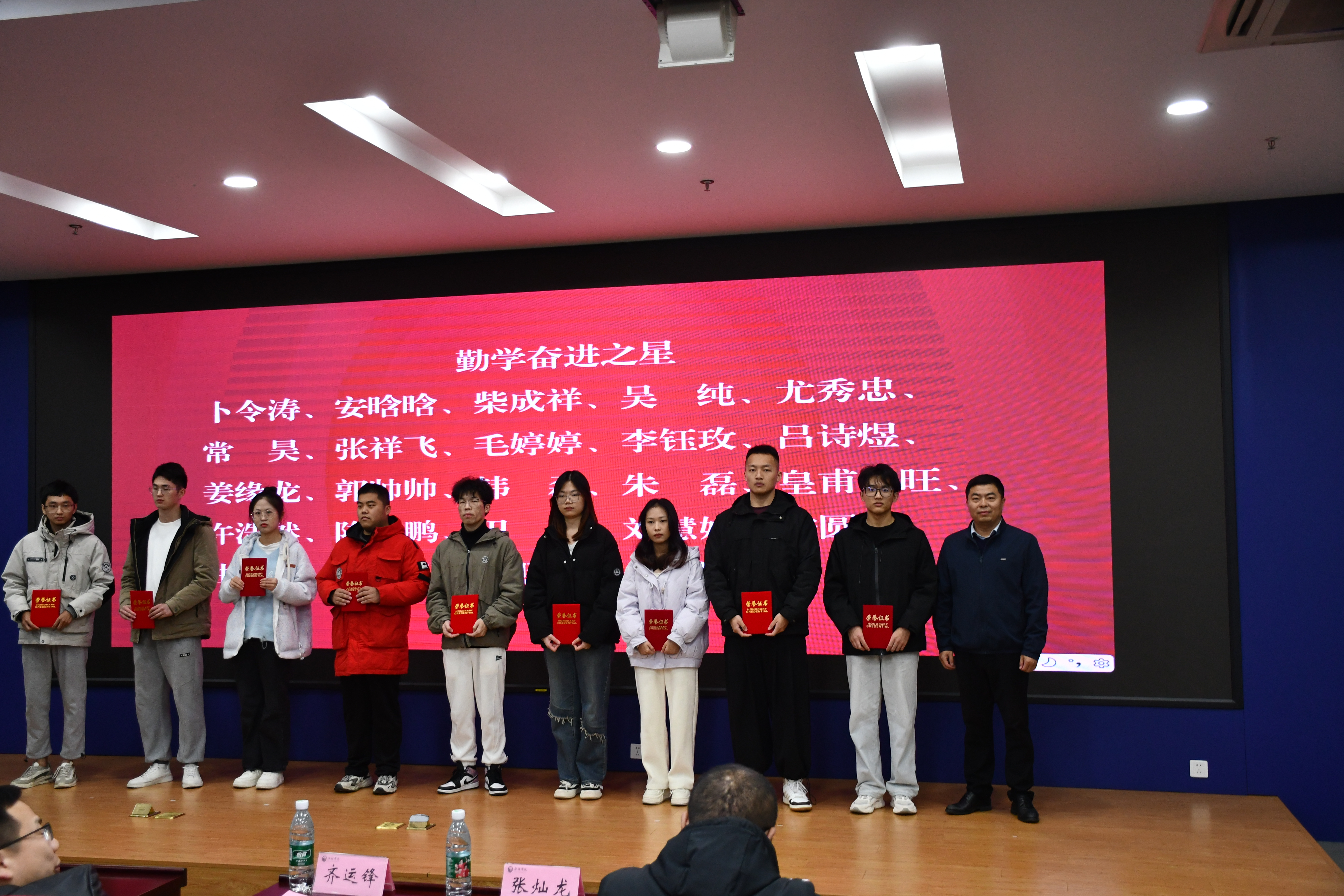 应用技术学院副院长武丽宣读了2023-2024学年“学院之星”获奖名单,教务处处长钱承山、学生工作处处长张灿龙、团委书记李沛武应邀为获奖学生颁奖。机械工程专业系主任蒋亮寄语学院学子刻苦治学,勇克难关,成就精彩人生。优秀在校生代表吕诗韵分享了自己大学阶段的所思所想所得并祝福2025届考研学子金榜题名,一战成硕。