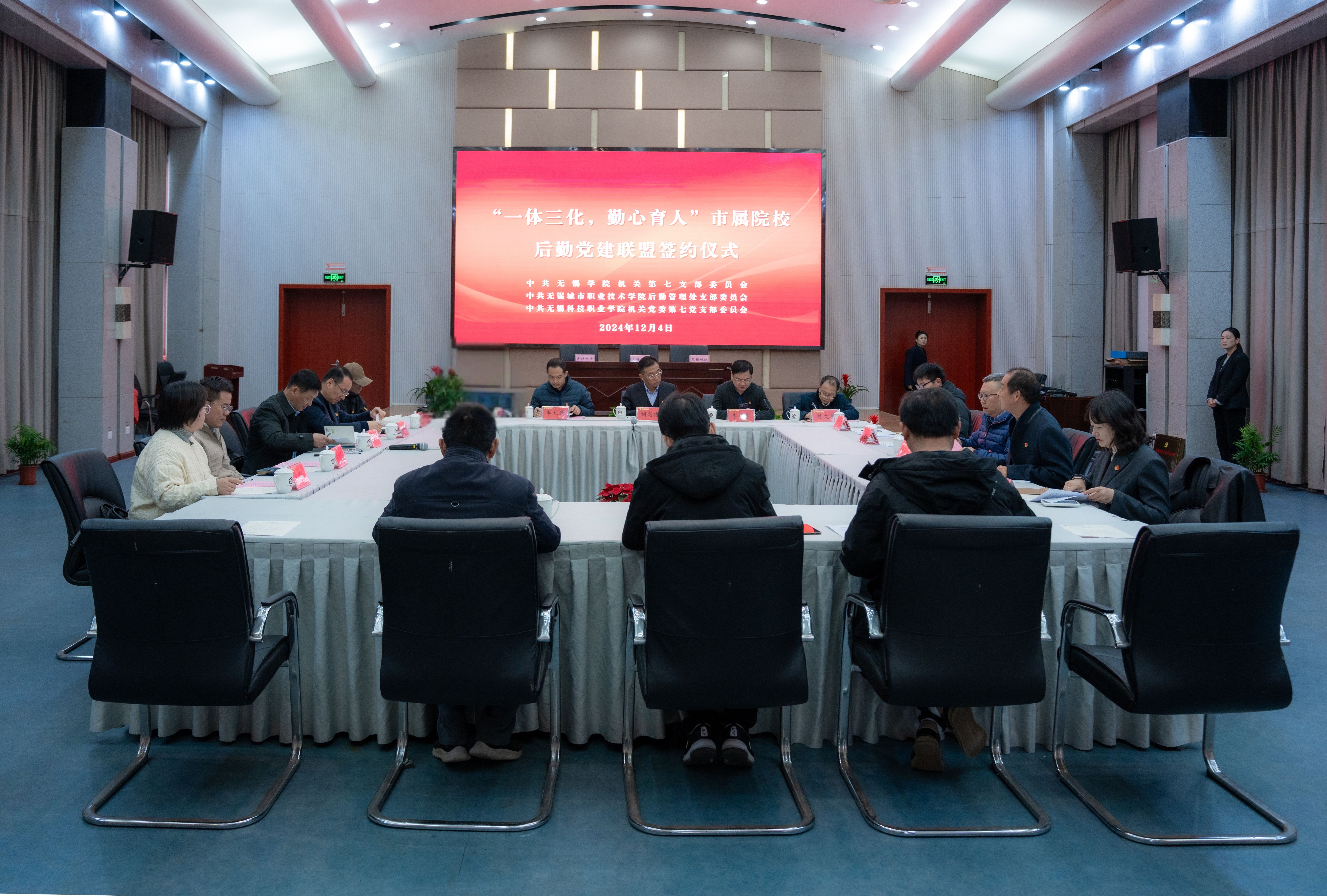 12月4日上午,无锡市“市属高校后勤党建联盟”在无锡城市职业技术学院举办成立暨签约仪式。我校副校长胡剑凌,无锡科技职业学院党委委员、副院长王锡刚,无锡城市职业技术学院党委委员、副校长田建军出席仪式。三所高校后勤条线主要党政干部参加仪式。