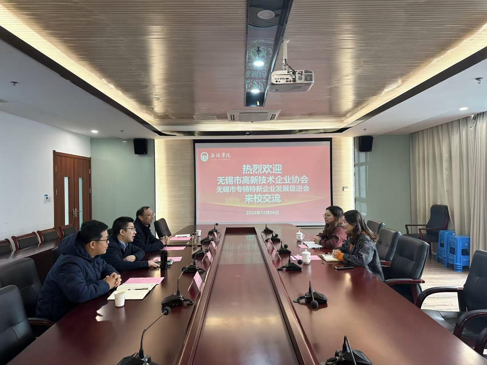 12月6日上午,无锡市高新技术企业协会秘书长王姿艳、无锡市专精特新企业发展促进会秘书长衡晓来校调研交流,我校副校长徐军海出席会议,人事处处长丁留贯、科技处副处长李东明及相关科室参加座谈会。会议由丁留贯主持。