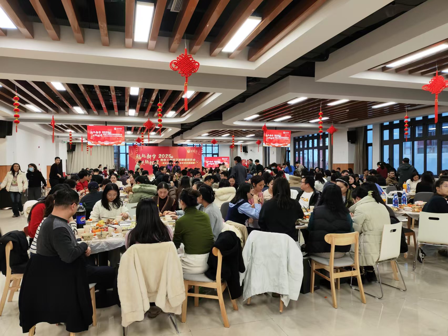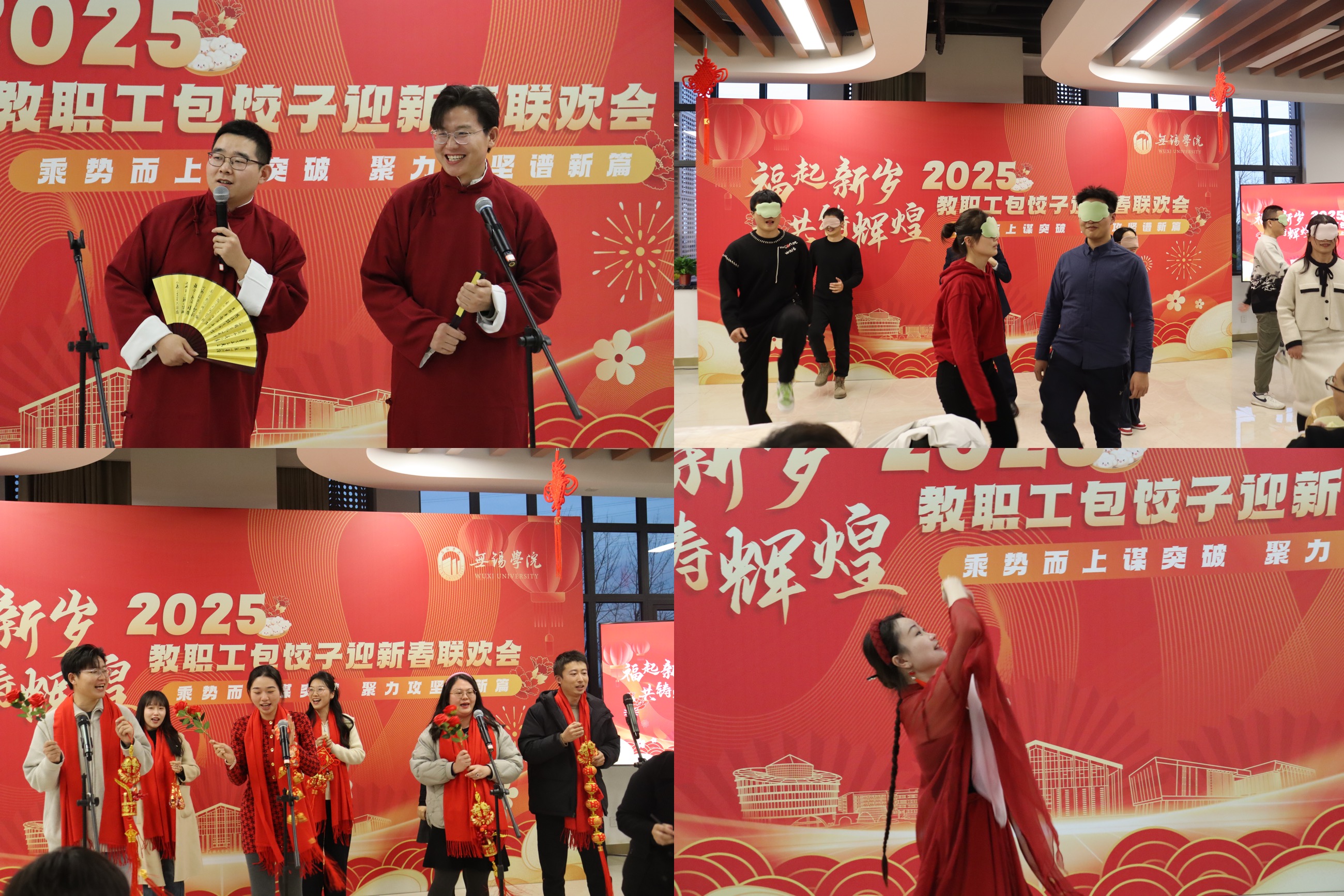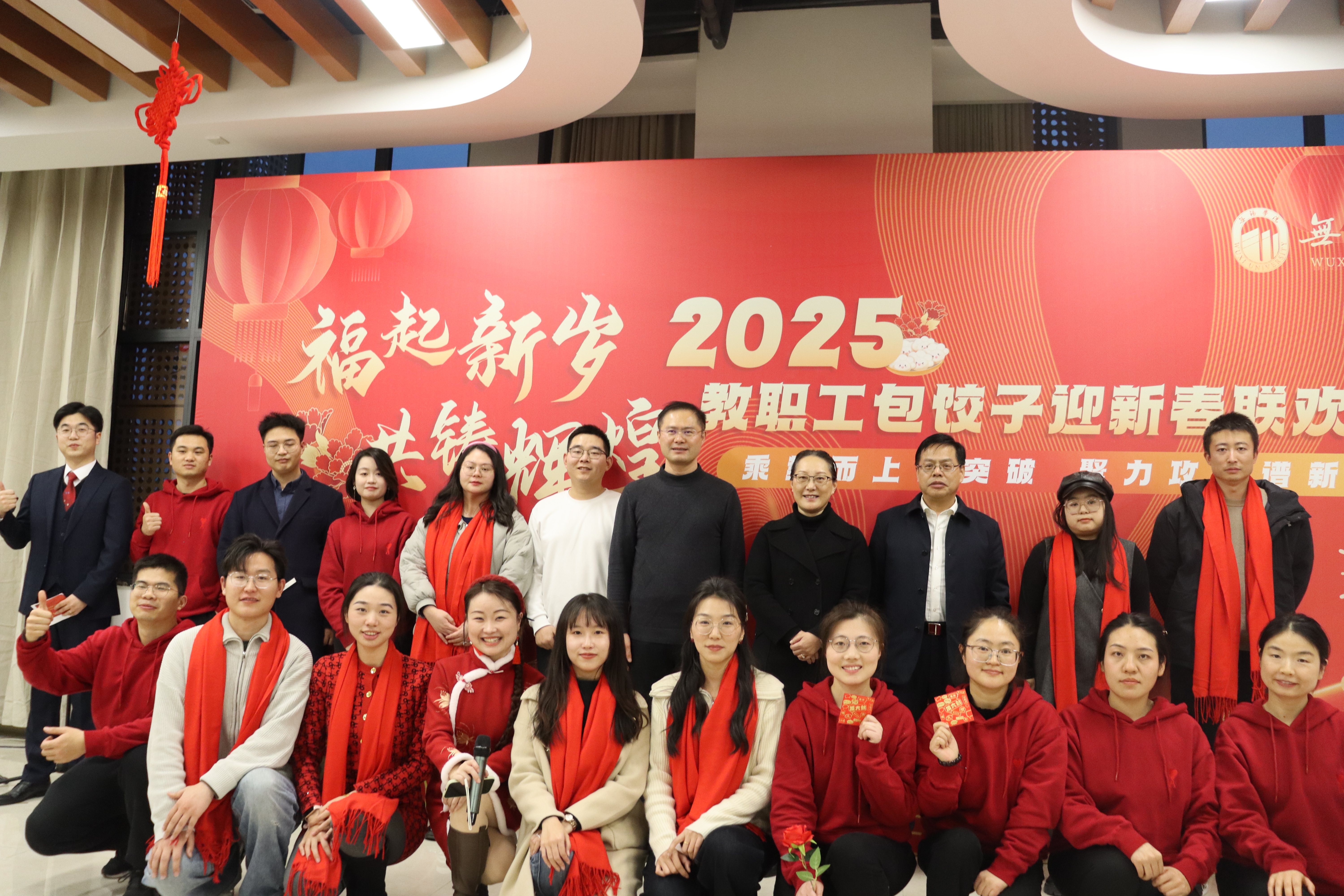 在新春佳节即将来临之际,为弘扬传统文化,增进教职工之间的情感交流,营造温馨和谐的校园氛围,1月9日晚,我校在梅园食堂三楼举办2025年“福起新岁 共铸辉煌”教职工迎新春联欢活动。校领导梁惠娥、曹广喜、王友明、胡剑凌、左同宇与300余名教职工共同参加了此次活动。活动由校党委常委、副校长梁惠娥主持。