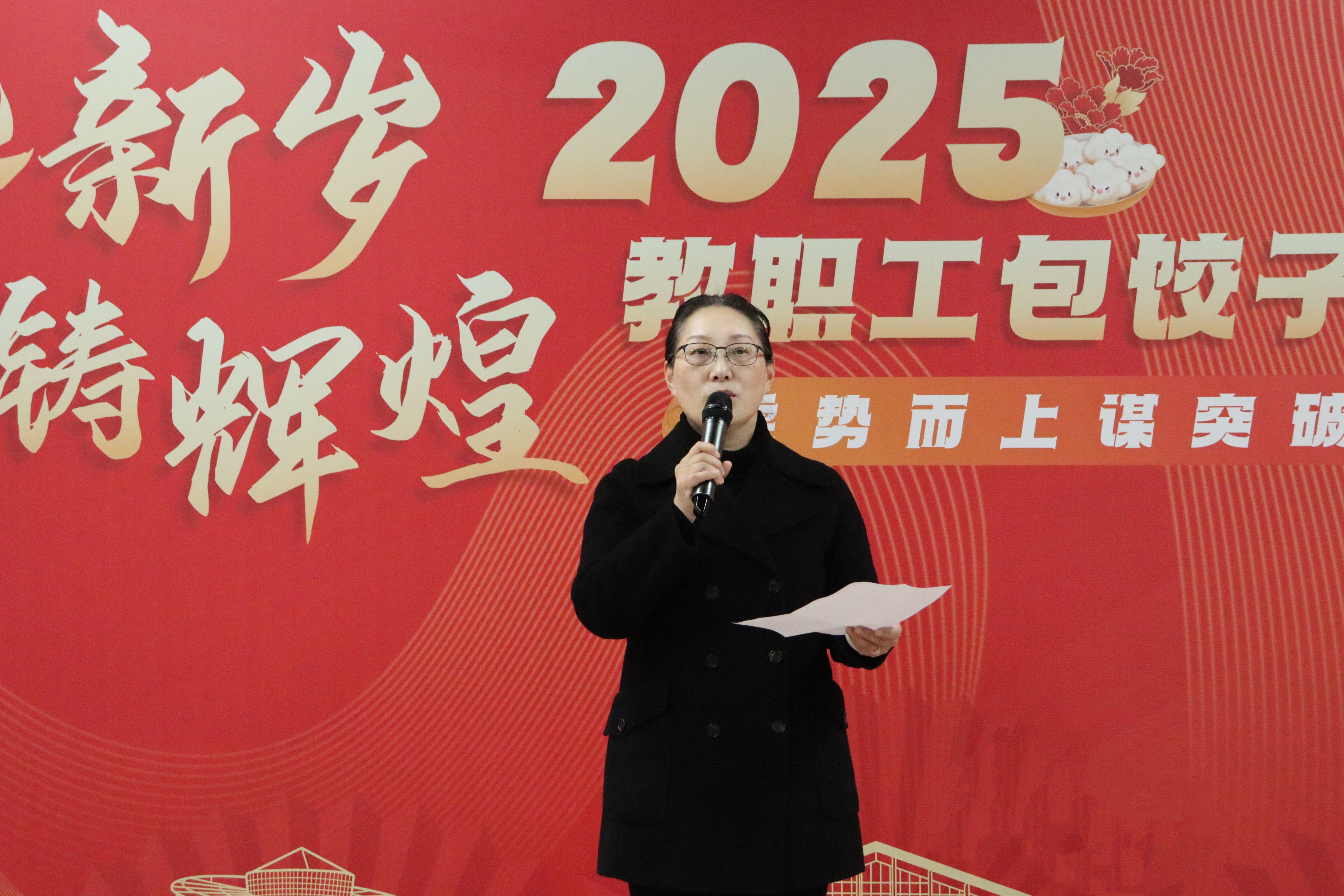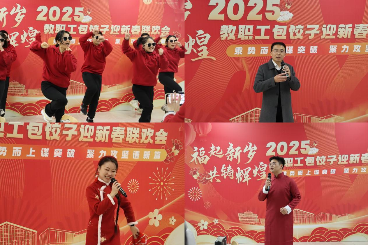 活动现场,气氛热烈、喜气洋洋。教职工们围坐一团,边包饺子边交流,欢声笑语不断。大家亲手制作的饺子形状各异、创意十足,寄托着对新年的美好祝愿和对彼此的深厚情谊。文艺表演更是精彩纷呈,教职工们展现出多才多艺的一面,歌曲、舞蹈、相声等节目轮番上演,精彩不断。而穿插其间的趣味游戏,更是将现场气氛推向一个又一个高潮。