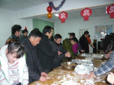 12月28日,学院各部门领导、老师在元旦前到宿舍看望滨江学子,并与众学子在文苑18栋活动室一起“包饺子,过元旦”,院领导祁正新、杨丰政,后勤总公司副书记陈忠等参与了活动。
