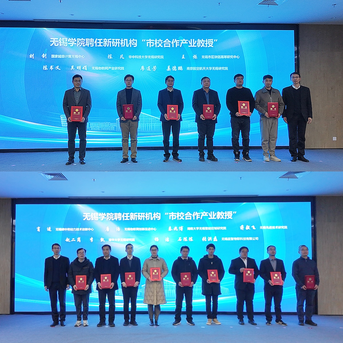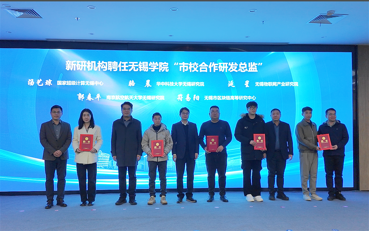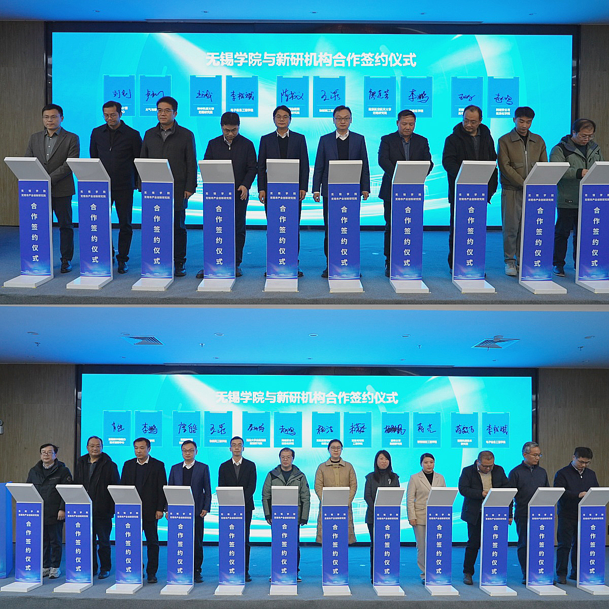 此外,国家超级计算无锡中心、无锡先进技术研究院、清华大学无锡研究院、华中科技大学无锡研究院、湖南大学无锡智能控制研究院、南京航空航天大学无锡研究院、无锡物联网创新促进中心等11家新型研发机构与我校相关学院签署了合作协议。现场还举行了“市校合作产业教授”“市校合作研发总监”互聘仪式。