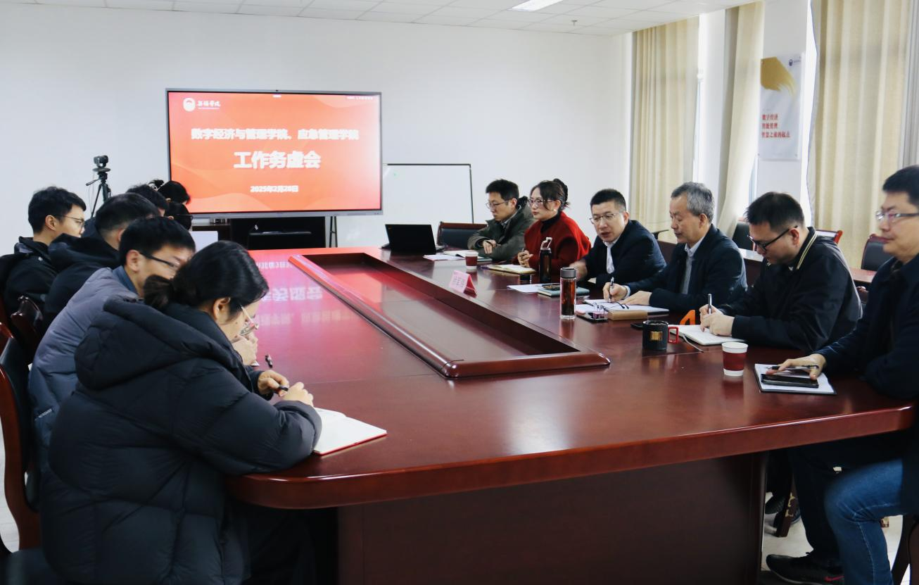 2月28日上午,数字经济与管理学院(应急管理学院)在尚美楼504会议室召开了学院发展工作务虚会,围绕新学期重点工作和发展方向展开深入研讨。副校长徐军海,学院全体领导班子成员,各系主任、副主任以及教师代表参加了会议。会议由院长刘军主持。