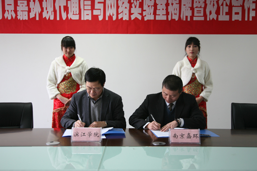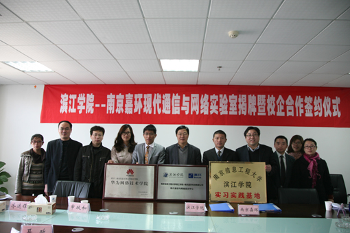 4月10日上午,我院现代通信与网络实训实验室成立揭牌仪式隆重举行。校长助理、滨江学院院长申双和、副院长耿焕同、教务办主任齐运锋、计算机系主任林美华、电子工程系主任张银胜、设备办副科长戴燕、实践教学科副科长李艳艳等参加揭牌庆典,此外,出席本次揭牌仪式的领导还有该实验室的共建单位南京嘉环科技有限公司的市场部经理景象、培训部经理梅卫峰、客户经理赵冰、华为办事处客户经理聂政。滨江学院副院长耿焕同主持揭牌仪式。