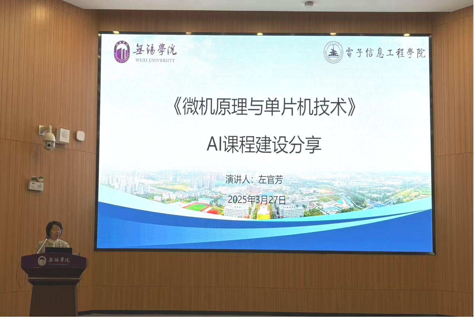 揭牌仪式后,三位与会专家围绕 “人工智能赋能教师教学” 主题进行了精彩的分享报告。我校电子信息工程学院《微机原理与单片机技术》课程负责人左官芳老师,详细分享了将 AI 技术融入传统课程,提升教学效果与学生体验的宝贵经验;南京航空航天大学教务处副处长李晋斌从宏观视角深入探讨了 AI 技术对高校教育的深远影响,并分享了南航在 AI 赋能教学方面的成功实践;超星公司项目经理张融慧以《AI 赋能高校教育数智化建设与应用》为题,全面介绍了超星公司在 AI 教育领域的专业解决方案及典型应用案例。