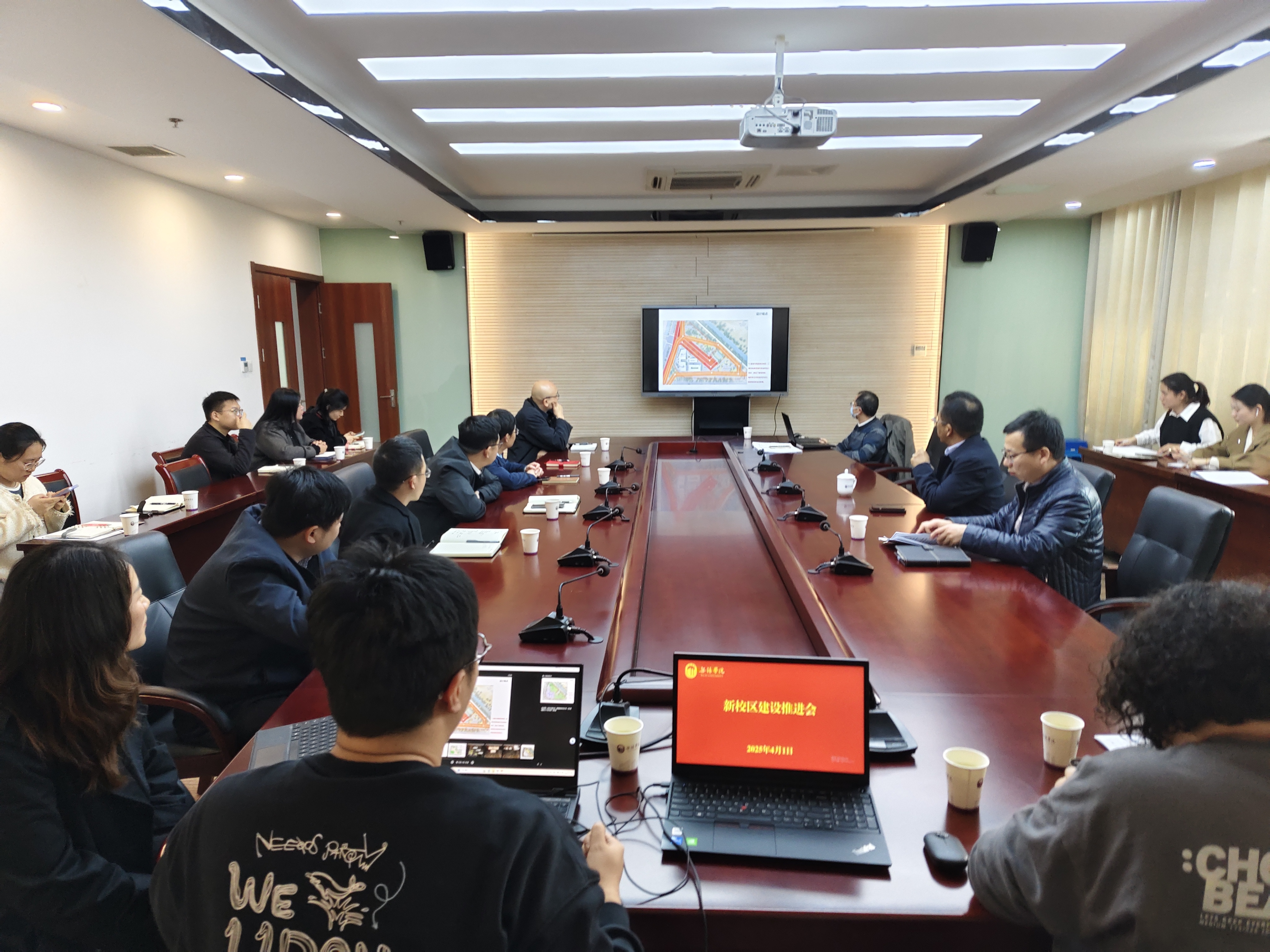 会上还听取了东校区景观绿化设计方案的介绍,与会人员结合我校实际及未来发展对新校区建设及规划积极建言献策、沟通交流。