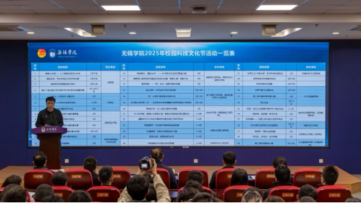 活动现场,与会领导共同启动无锡学院2025年校园科技文化节活动。本届校园科技文化节以“青春答卷书华章,科创先锋向未来”为主题,由校团委、学生工作处、创新创业学院、科技处联合组织开展,共策划了39项内容丰富、形式新颖的科技文化活动,涵盖学科竞赛、科技沙龙、学术论坛、成果展示等多个领域。