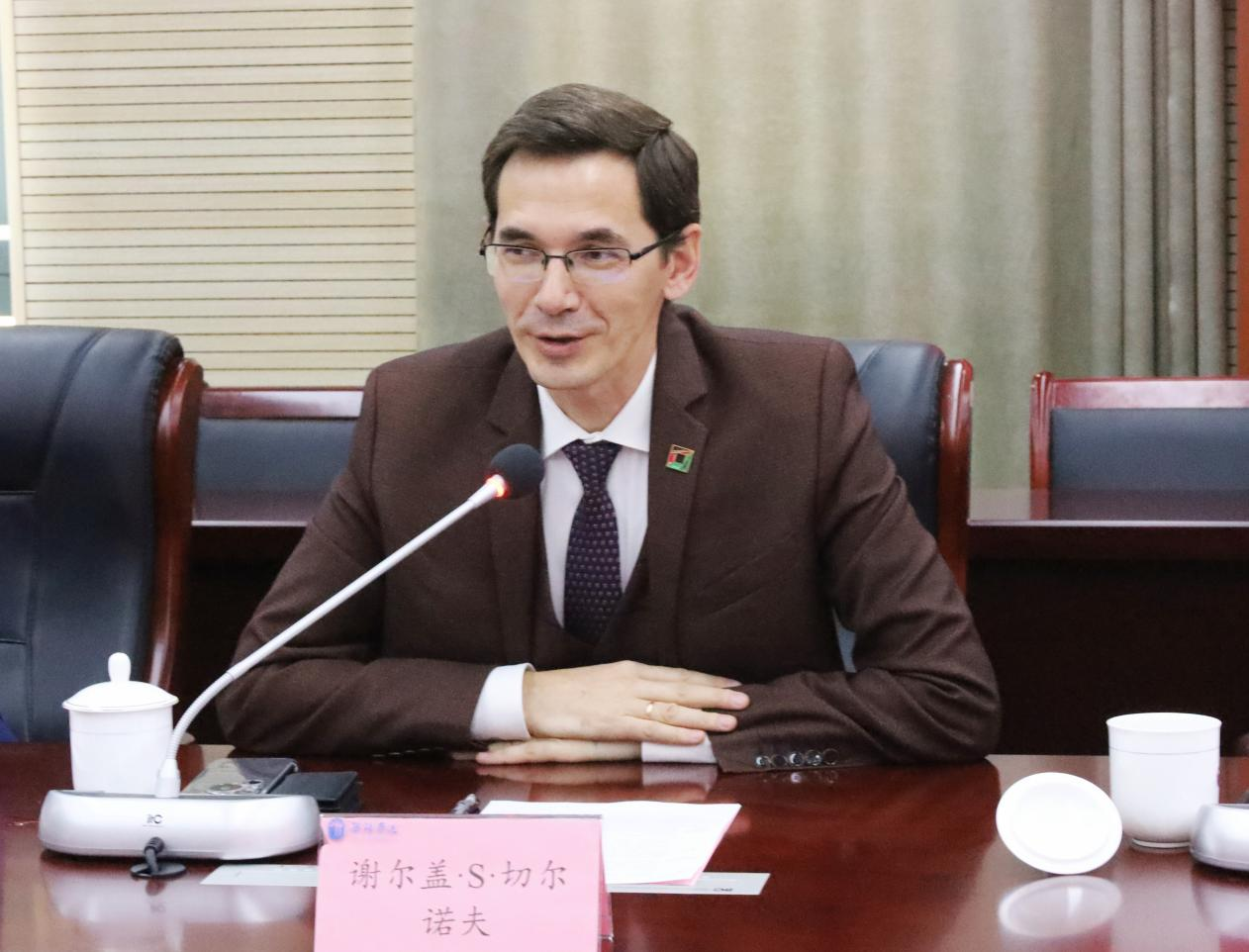 谢尔盖・谢尔盖耶维奇・切尔诺夫对我校的热情接待表示感谢。他首先对我校的硬件设施和发展水平表示肯定,他介绍了新西伯利亚国立技术大学的基本情况,包括学校的历史沿革、专业设置和教学特色等。他高度评价了与我校的合作成果,他强调,将全力配合“无锡学院新西伯利亚学院”的筹建工作,在师资派遣、教学实施、人才培养等方面与我校充分协作,确保“无锡学院新西伯利亚学院”高质量运行。他希望两校在共建联合实验室、共享科研资源、举办国际会议等方面开展全方位合作,为中俄两国的教育、科研和文化交流贡献更多力量。