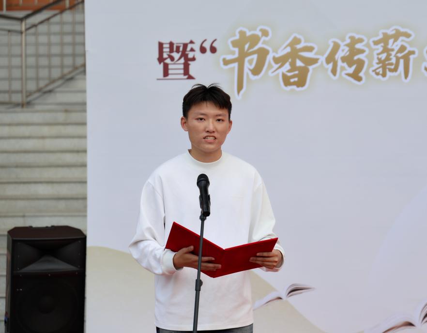 梁惠娥在致辞中指出,图书馆作为校园文化传播的重要阵地,开展优质阅读推广活动,不仅是落实立德树人教育使命的重要举措,更是服务全民阅读事业的社会工程。围绕本次阅读推广活动,她提出三点期望:以“校地共融”为纽带,构建“资源共享、活动共办、文化共兴”的阅读共同体;以“文化自信”为底色,将千年文脉转化为育人的鲜活实践;以“知行合一”为航标,将阅读从个体行为升华为系统性育人工程。她寄语青年学子,希望大家争做文脉传薪的守护者、书香致远的探索者、新程启航的践行者,在经典阅读中筑牢精神根基,在多元阅读中拓展认知视野,将书中所学转化为强国复兴的青春力量。