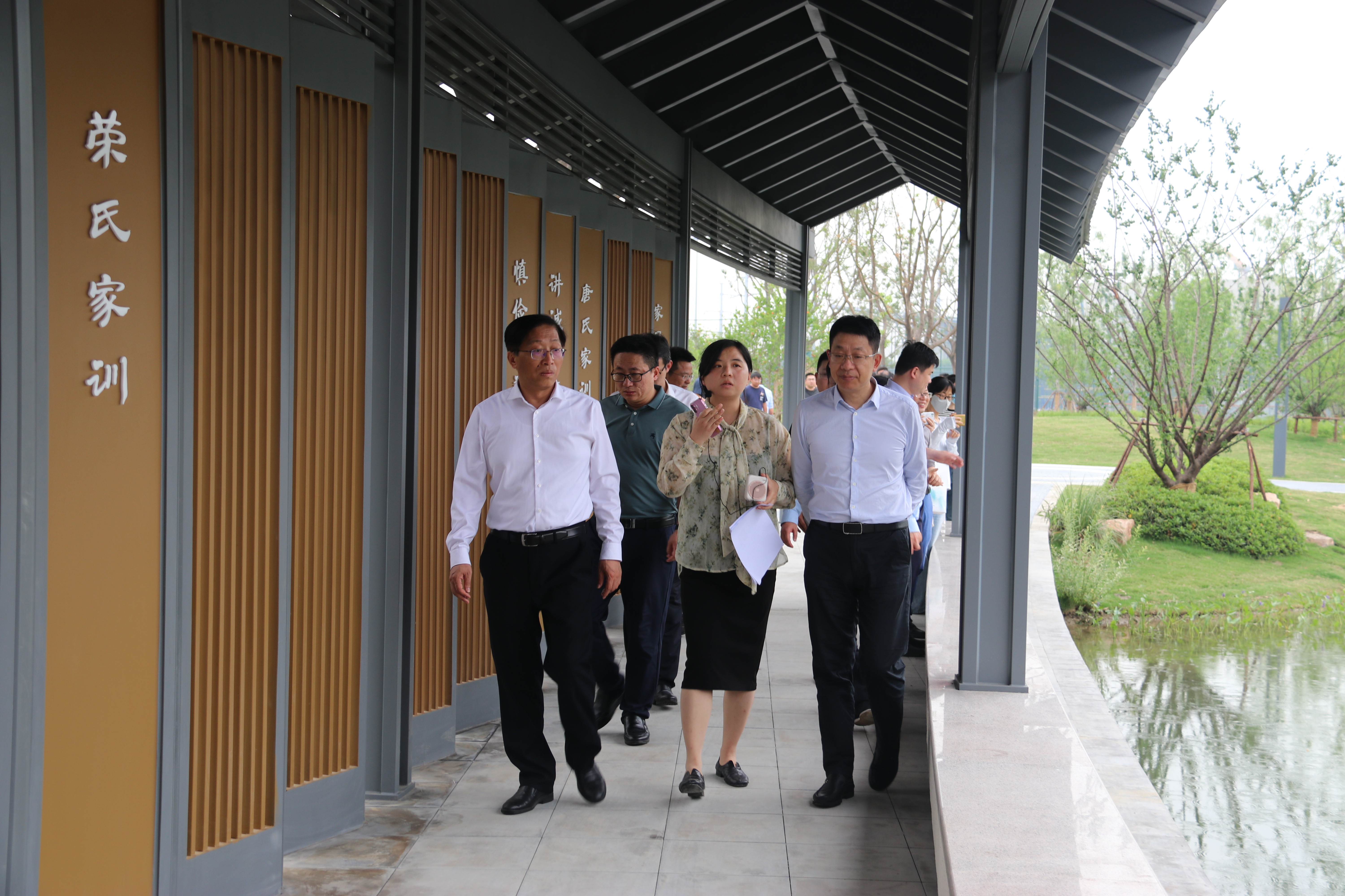 5月15日下午,我校党委书记张永宏、校长孙雁飞等校领导班子成员及相关职能部门负责人一行,实地参观考察了新近落成的北侧校园景观建设工程“静笃园”。