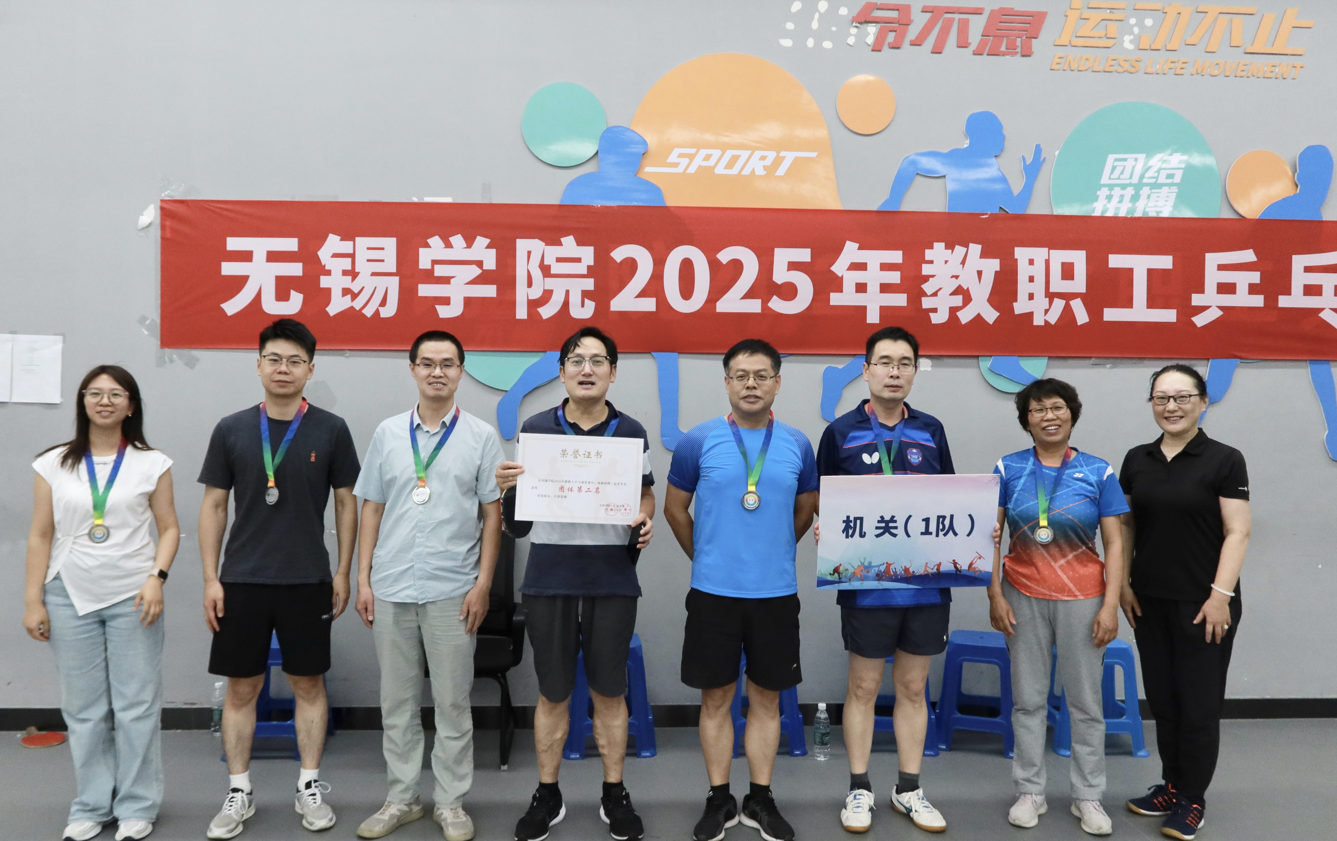 我校于6月11日、6月18日在教职工体育活动中心成功举办了2025年教职工乒乓球比赛。本次比赛由校工会主办,体育部、教职工乒乓球协会协办,吸引了来自各分工会的9支代表队近100名教职工参加。
