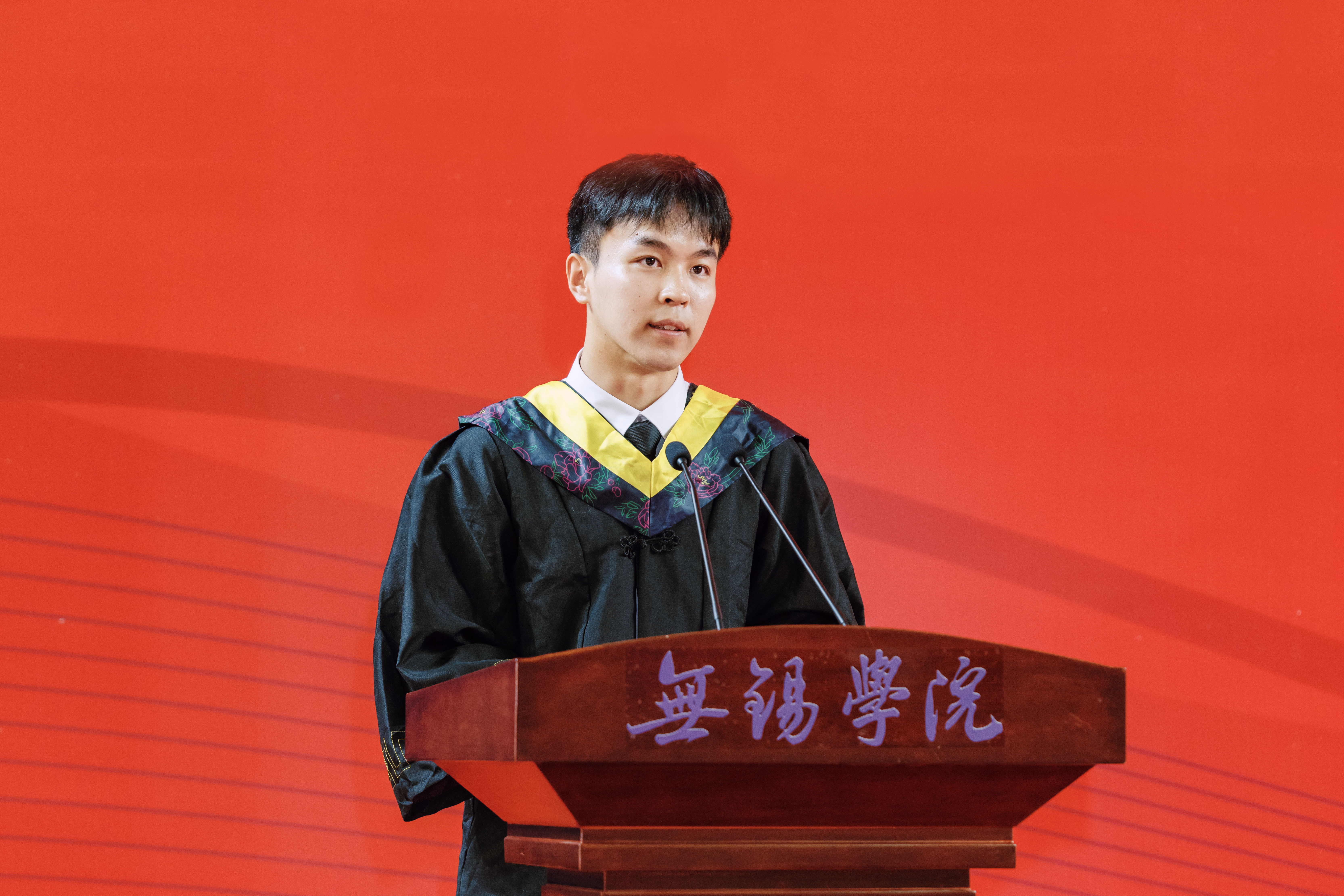 优秀毕业生代表、交通与车辆工程学院轨道交通信号与控制专业王博闻同学深情回顾锡院四年求学岁月:“母校不仅搭建了梦想舞台,更让我们深刻领悟‘知’之厚重、‘行’之勇气、‘爱’之深沉。”展望未来,他坚定表态:“将继续做笃学敏行的实践者、脚踏实地的奋斗者、心系家国的追梦者!”临别之际,毕业生们向教职工代表献上鲜花,以诚挚的方式表达对师长的深切感恩。