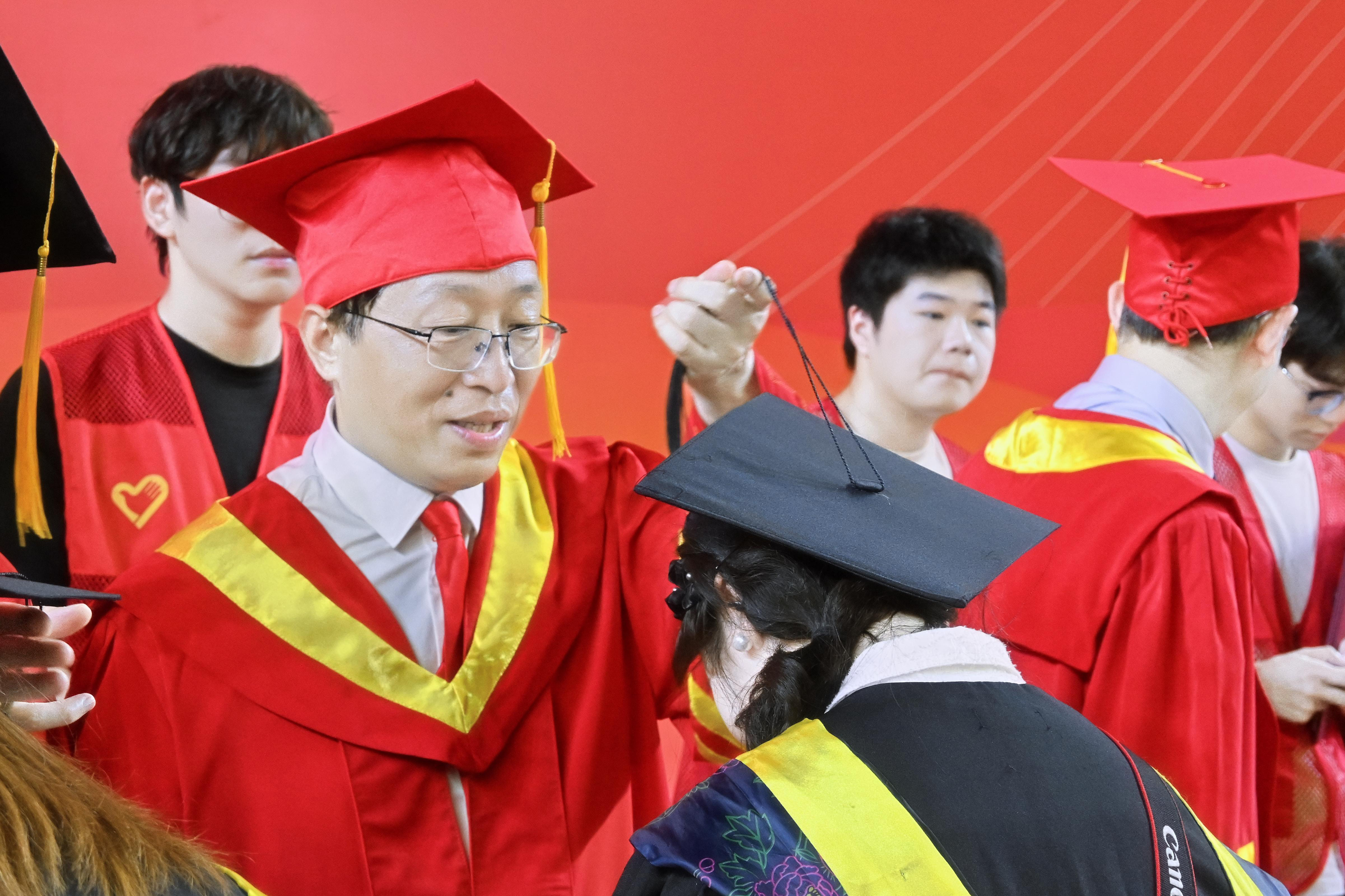 校领导为全体毕业生颁发学位证书、拨穗正冠