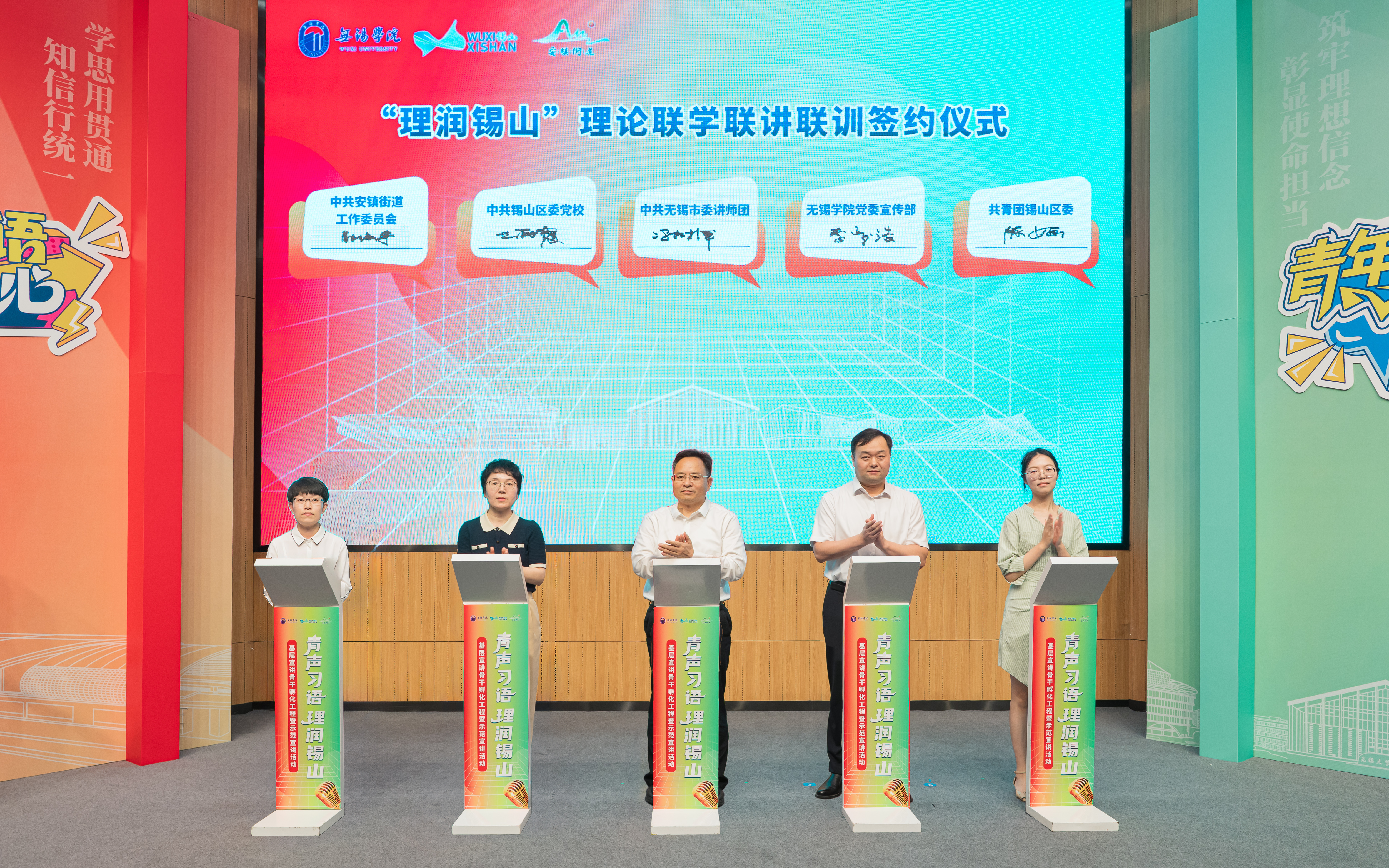 现场还举行了“理润锡山”理论联学联讲联训签约仪式,无锡市委讲师团、我校党委宣传部、锡山区委党校、锡山团区委、安镇街道党工委相关负责人上台签约。