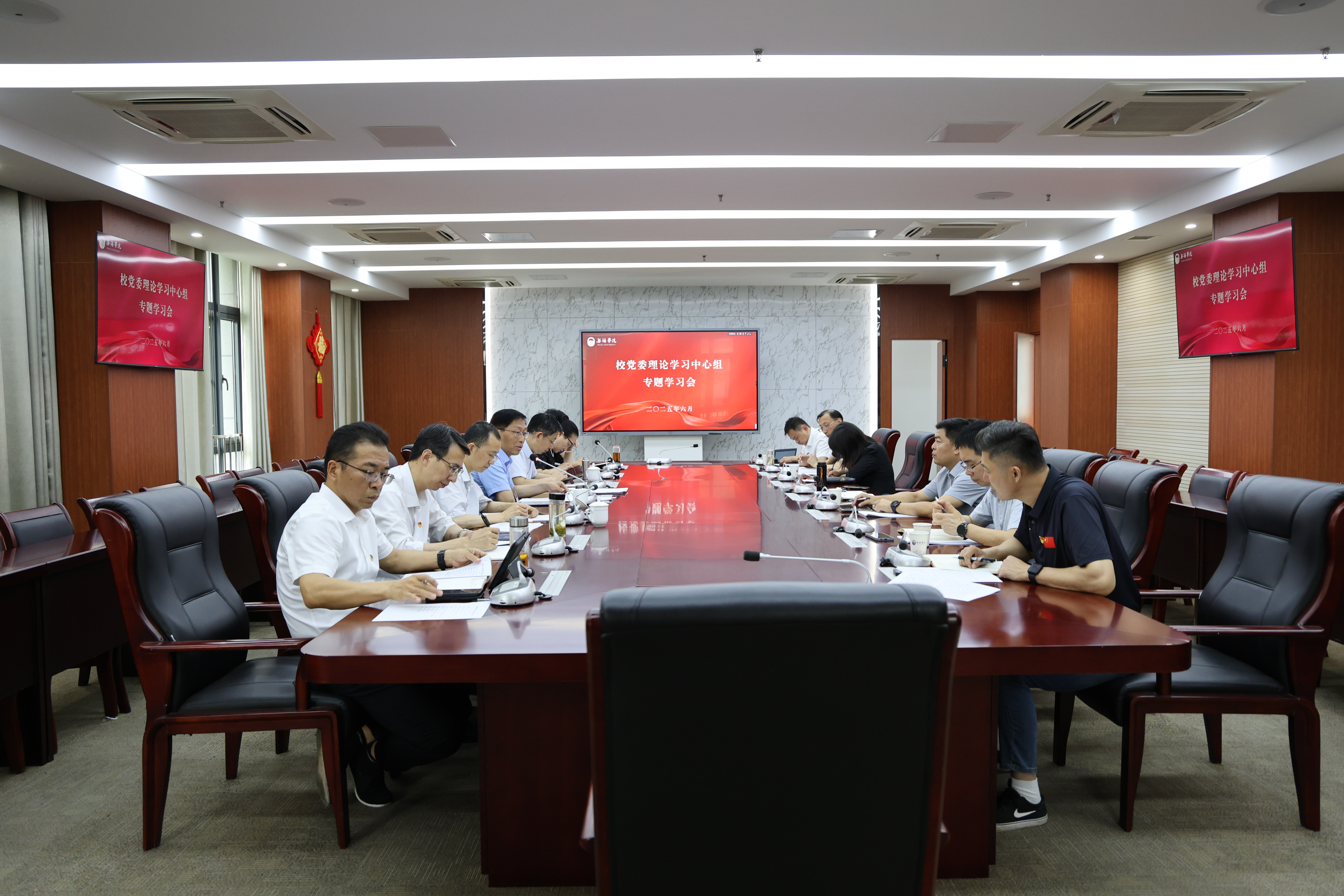 6月23日上午,校党委理论学习中心组在行政楼327会议室,围绕深入贯彻中央八项规定精神学习教育进行专题学习研讨。校党委书记张永宏主持会议。校党委理论学习中心组成员参加会议。