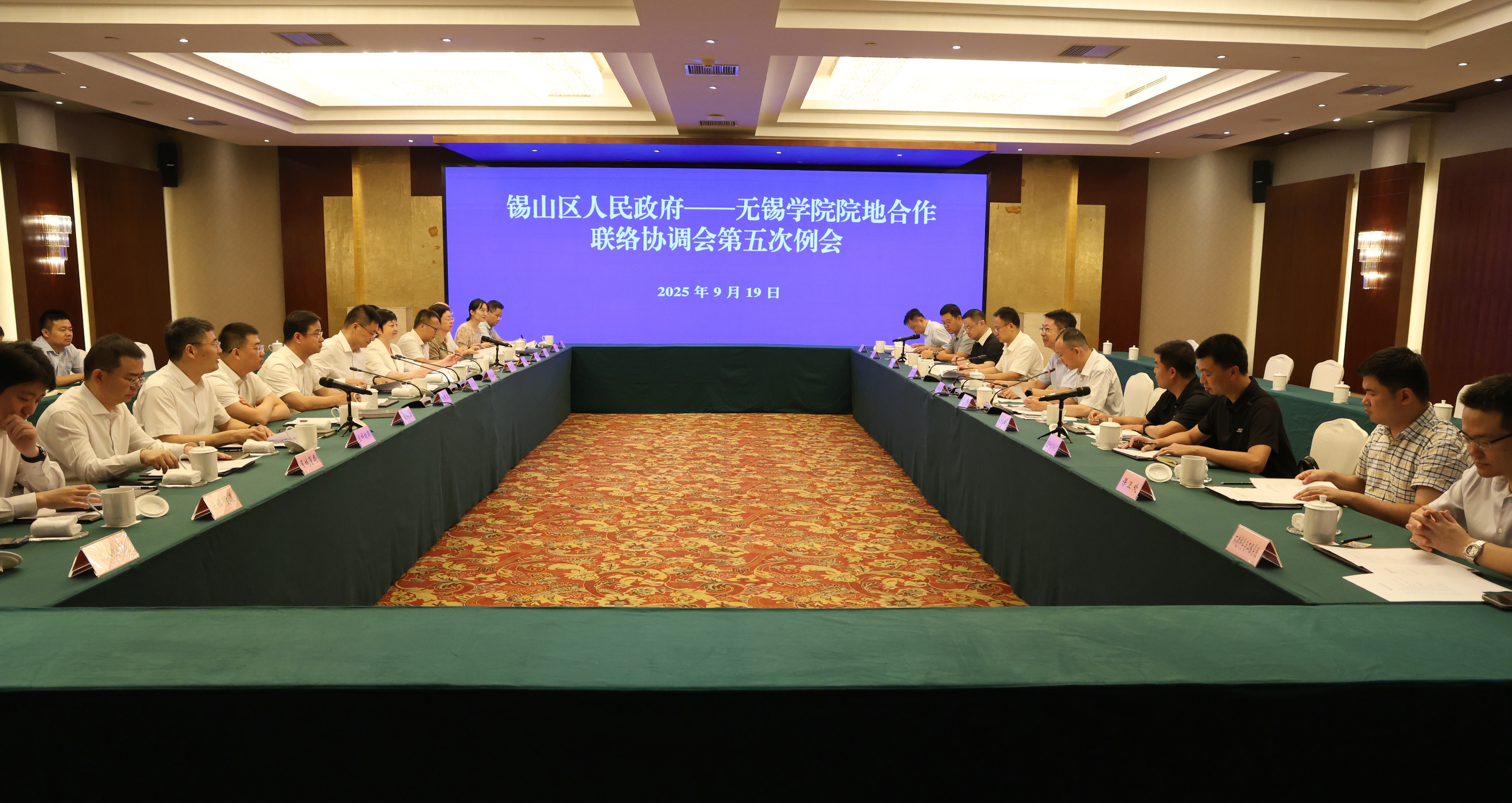 为持续深化校地合作,共谋发展新篇,9月19日上午,锡山区人民政府—无锡学院校地合作联络协调会第五次例会顺利召开。锡山区区长顾文浩,副区长保海燕、陆晓波,校长孙雁飞,校党委副书记匡辉出席会议。锡山区相关部门及板块负责人,我校相关职能部门和二级学院负责人参加会议。会议由保海燕主持。