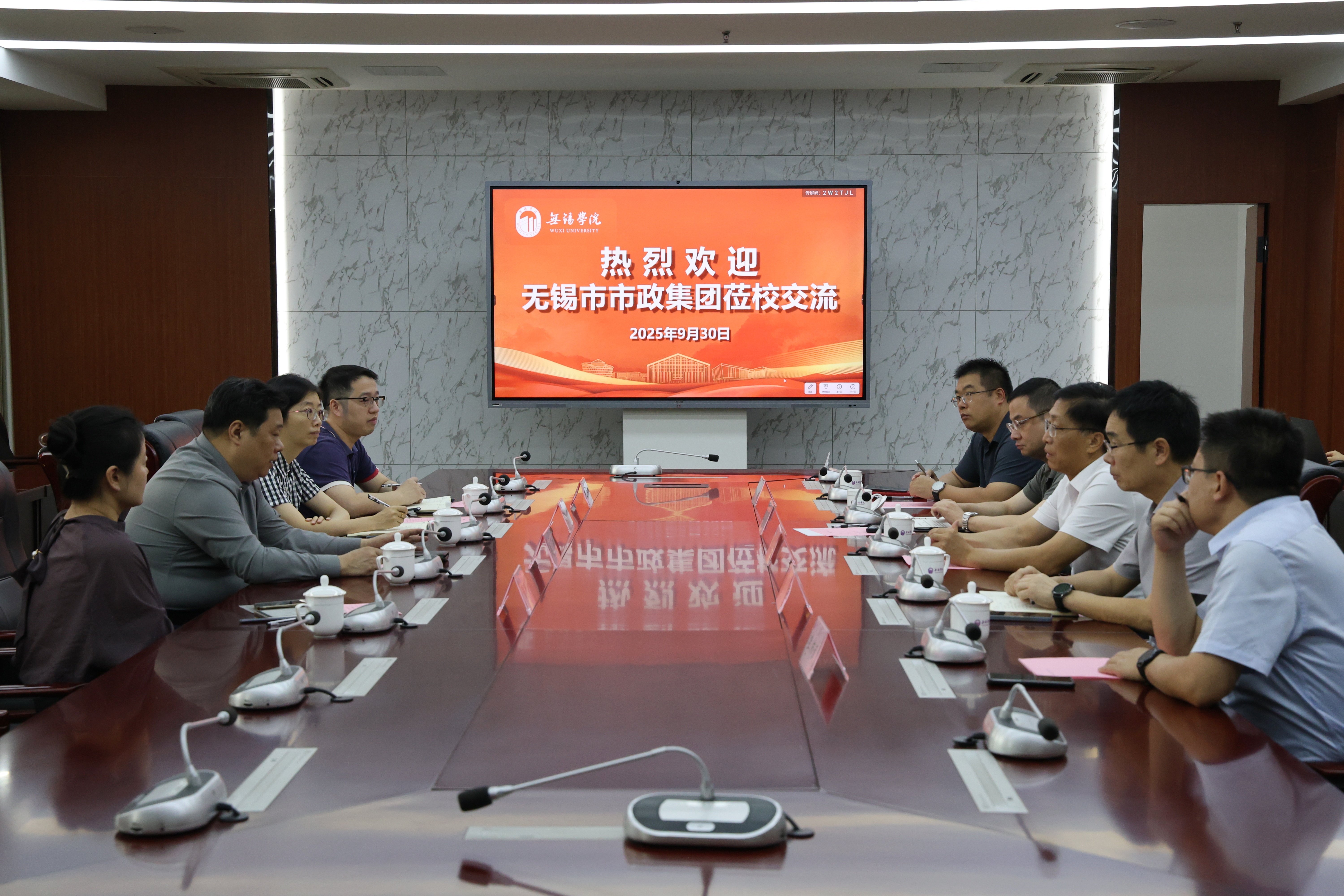 9月30日下午,无锡市市政集团党委书记、董事局主席赵民率集团相关部门负责人来我校调研交流。校党委书记张永宏出席座谈会,党委校长办公室、财务处、后勤管理处、基建处、信息化建设与管理中心负责人参加座谈。