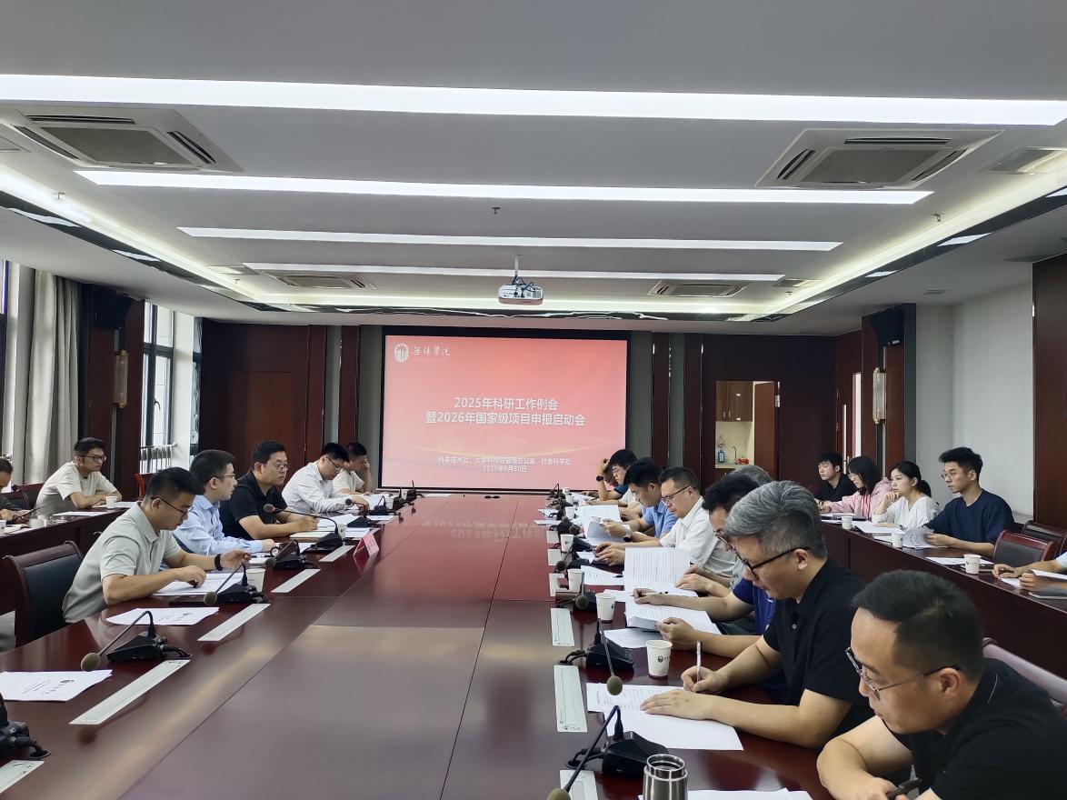 9月30日上午,我校在行政楼525会议室召开科研工作例会暨2026年国家级项目申报启动会。副校长徐军海主持会议并讲话。各二级学院科研工作负责人、大学科技园负责人和科技处全体工作人员参加会议。