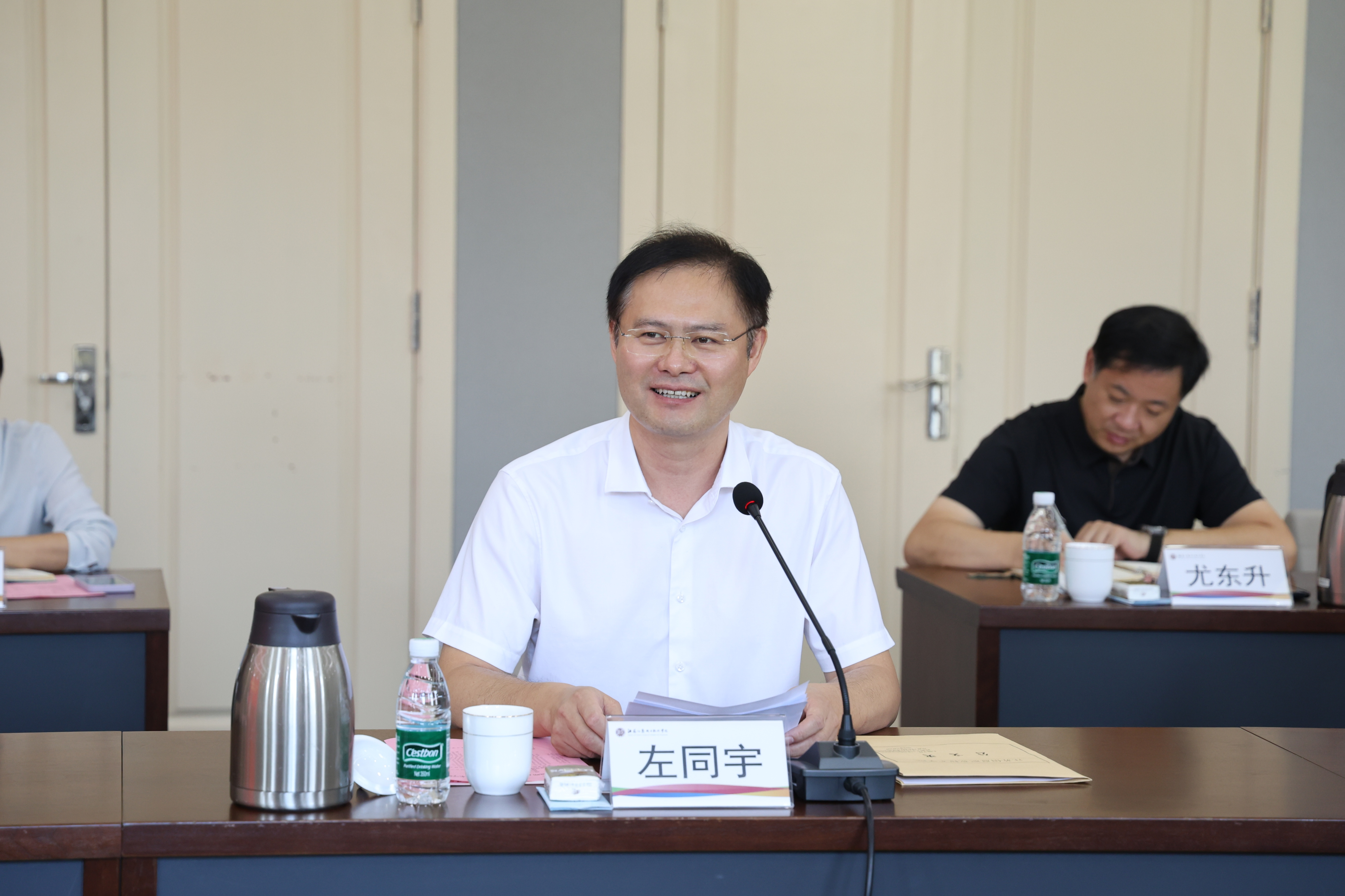 左同宇代表江苏信息职业技术学院对我校一行的到来表示欢迎,并介绍了学校办学发展历史与立德树人成果。他围绕“坚守教育初心,聚焦立德树人”“勇担时代使命,服务国家战略”“深化产教融合,赋能区域发展”三个方面,重点介绍了学校“365党建+”工作体系、“五大红色育人行动”等立德树人举措,以及在服务国家集成电路产业发展、“一带一路”倡议和区域经济中的突出贡献。希望以此次战略合作为契机,深化两校在人才共育、学科共建、社会服务等领域交流合作,携手构建高水平应用型大学与高水平高职院校协同发展新范式。