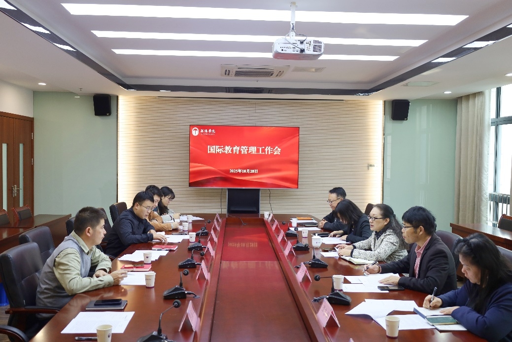 10月28日,我校召开国际教育管理工作会。副校长梁惠娥主持会议并讲话。教务处、国际合作与交流处、学生工作处、传媒与艺术学院、新西伯利亚学院和国际教育学院相关负责人参会。