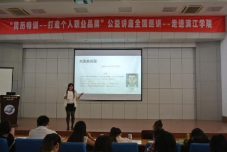 9月25日下午,院就业指导中心特邀上海乔布堂信息科技有限公司特聘讲师朱峰,在滨江报告厅给学院毕业生做了一堂就业指导讲座。讲座由院就业指导中心主任陈建坤老师主持,主题是“简历特训—打造个人职业品牌”。学院部分就业指导课程教师、辅导员以及400余名学生到场聆听讲座。