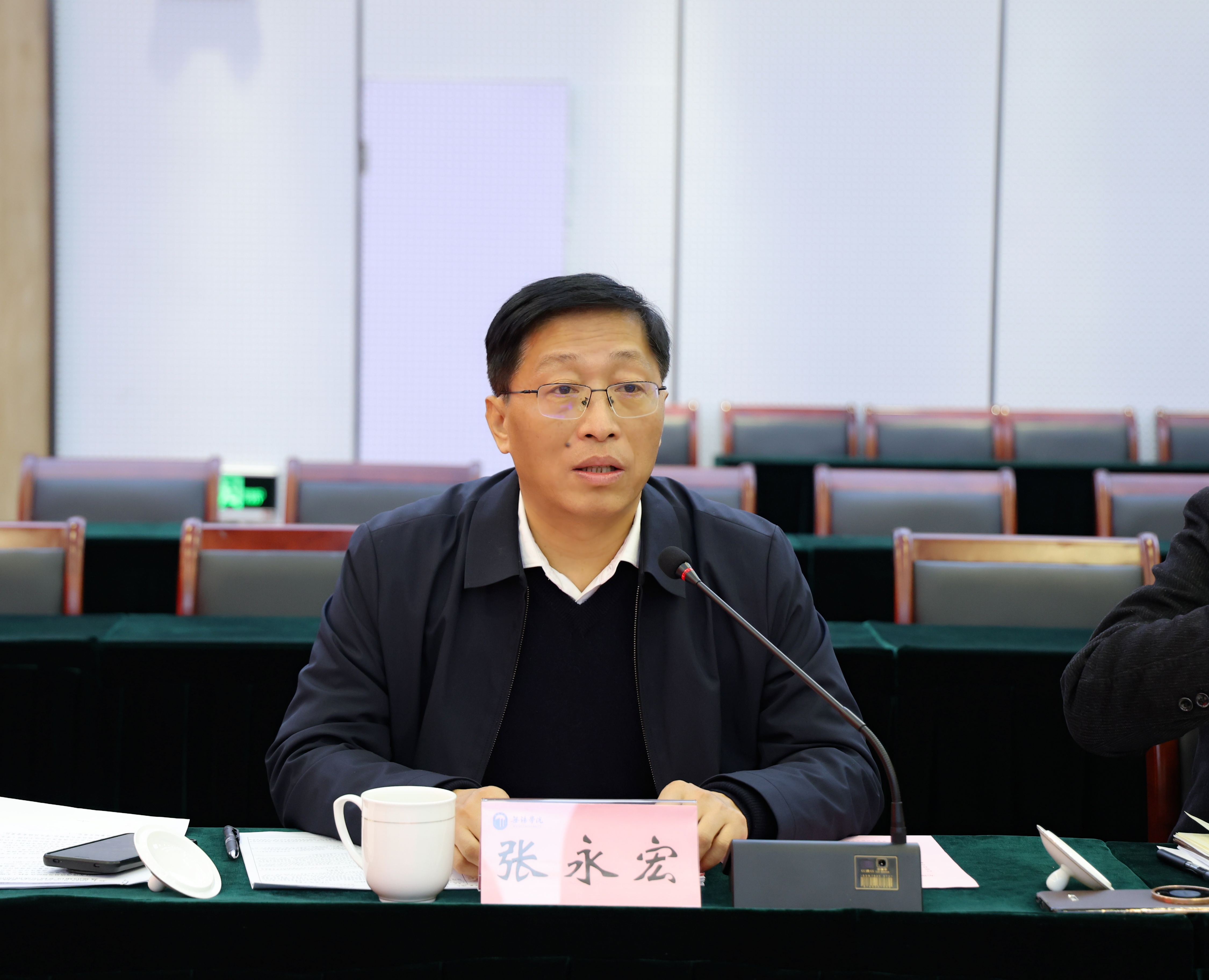 张永宏作总结讲话。他肯定了各部门、各学院在前期考核工作中取得的阶段性成效,同时也指出了工作中存在的不足和短板。针对下一步工作,张永宏提出三点要求:一是深研细悟指标内涵,确保“理解零偏差、执行不走样”。要对照考核指标体系,全面梳理自身工作,明确差距所在,制定针对性强、可操作的整改措施,全力以赴推动各项指标达标升级。二是强化考核责任担当,推动“重点工作抓紧抓实、落地见效”。要增强做好高质量发展综合考核的责任感和紧迫感,层层压实责任链条,创出新思路、新方法、新举措,突出亮点特色,以钉钉子精神把各项工作抓出实效、抓出质量。三是主动加强沟通联络,实现“沟通交流有效度、协同配合有成效”。要建立健全内部各部门之间的沟通协调机制,积极与兄弟院校开展交流学习,主动加强与上级部门的对接沟通,形成上下联动、齐抓共管的良好工作格局。
