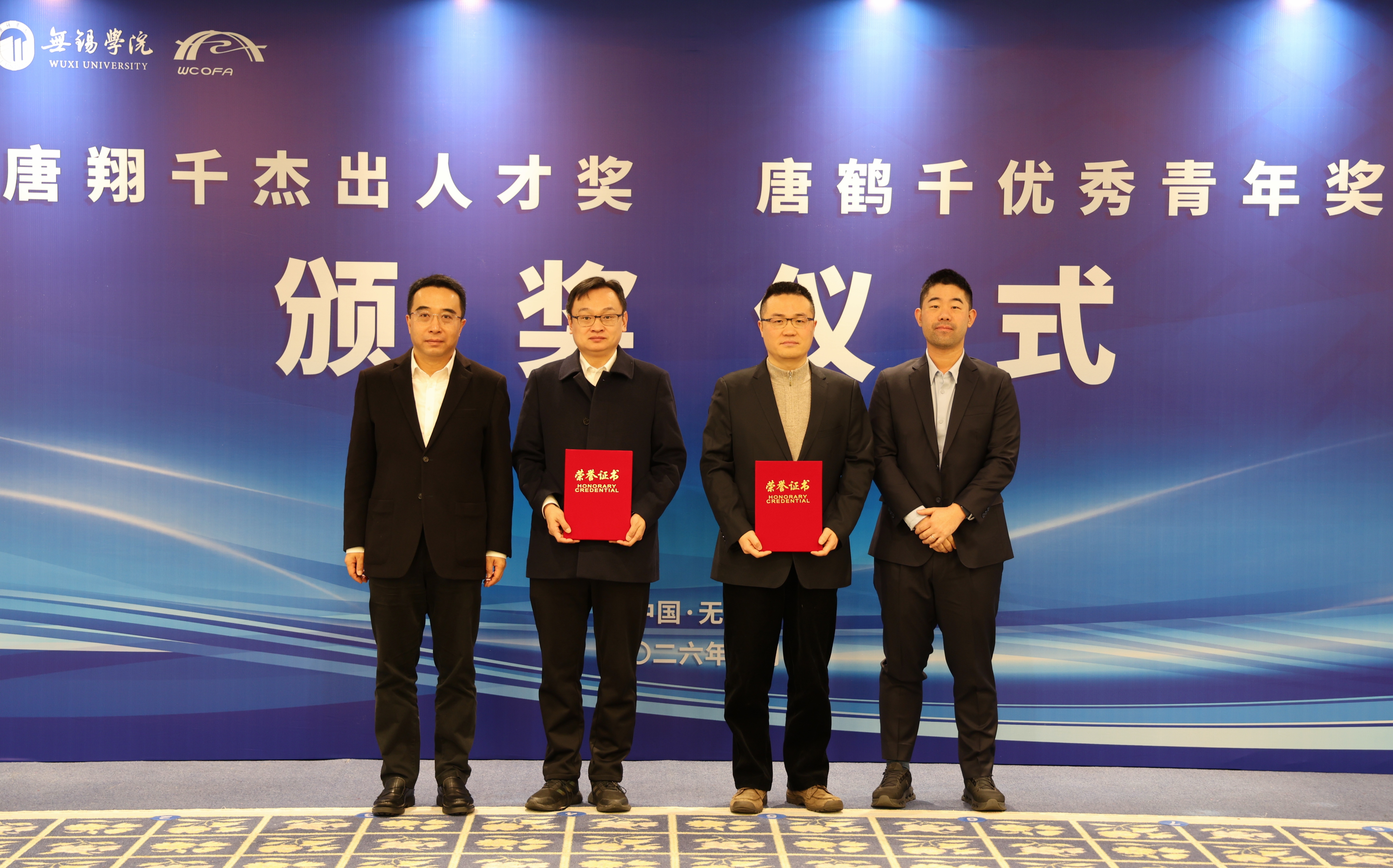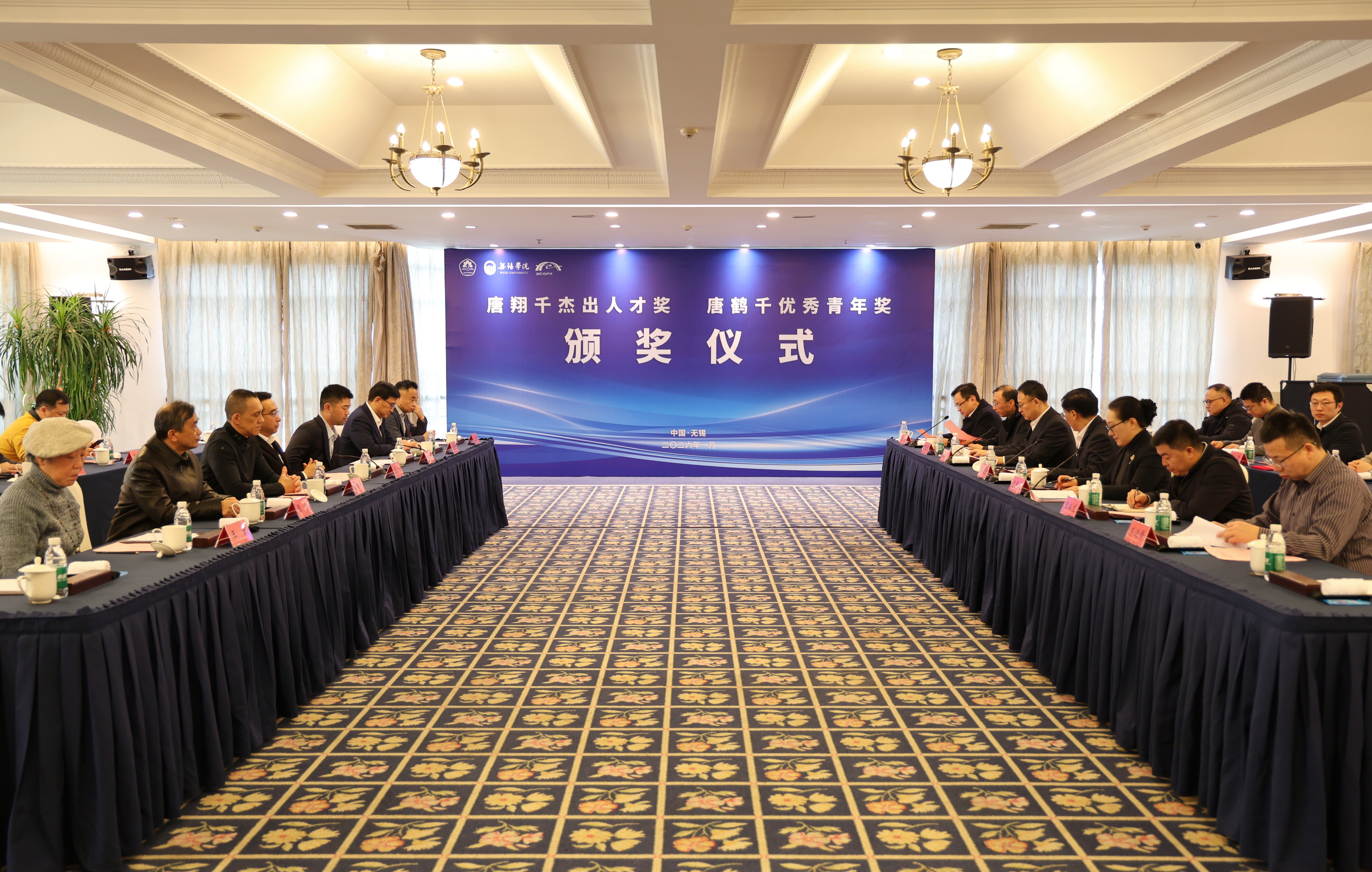 1月23日上午,我校举办“唐翔千杰出人才奖”“唐鹤千优秀青年奖”颁奖仪式。无锡市委常委、统战部部长、副市长马良,无锡学院党委书记张永宏,BMO银行金融集团董事总经理唐松年,上海唐君远教育基金会执行理事唐嘉盛,上海唐君远教育基金会理事兼秘书长张伟,无锡市委统战部副部长、市侨办主任赵俊明,无锡学院党委常委、组织部部长、统战部部长徐刚出席颁奖仪式。无锡市委统战部港澳台处,上海唐君远教育基金会,无锡学院党委办公室、校长办公室、党委统战部、人力资源处、发展规划处相关负责人参加活动。颁奖仪式由无锡学院党委常委、副校长、基金会理事长梁惠娥主持。